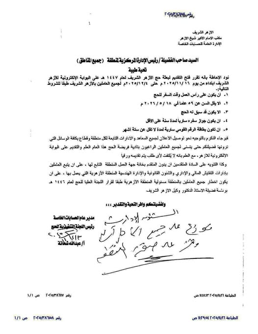 خطوات تقديم طلب حج للعاملين بالأزهر الشريف 2026
