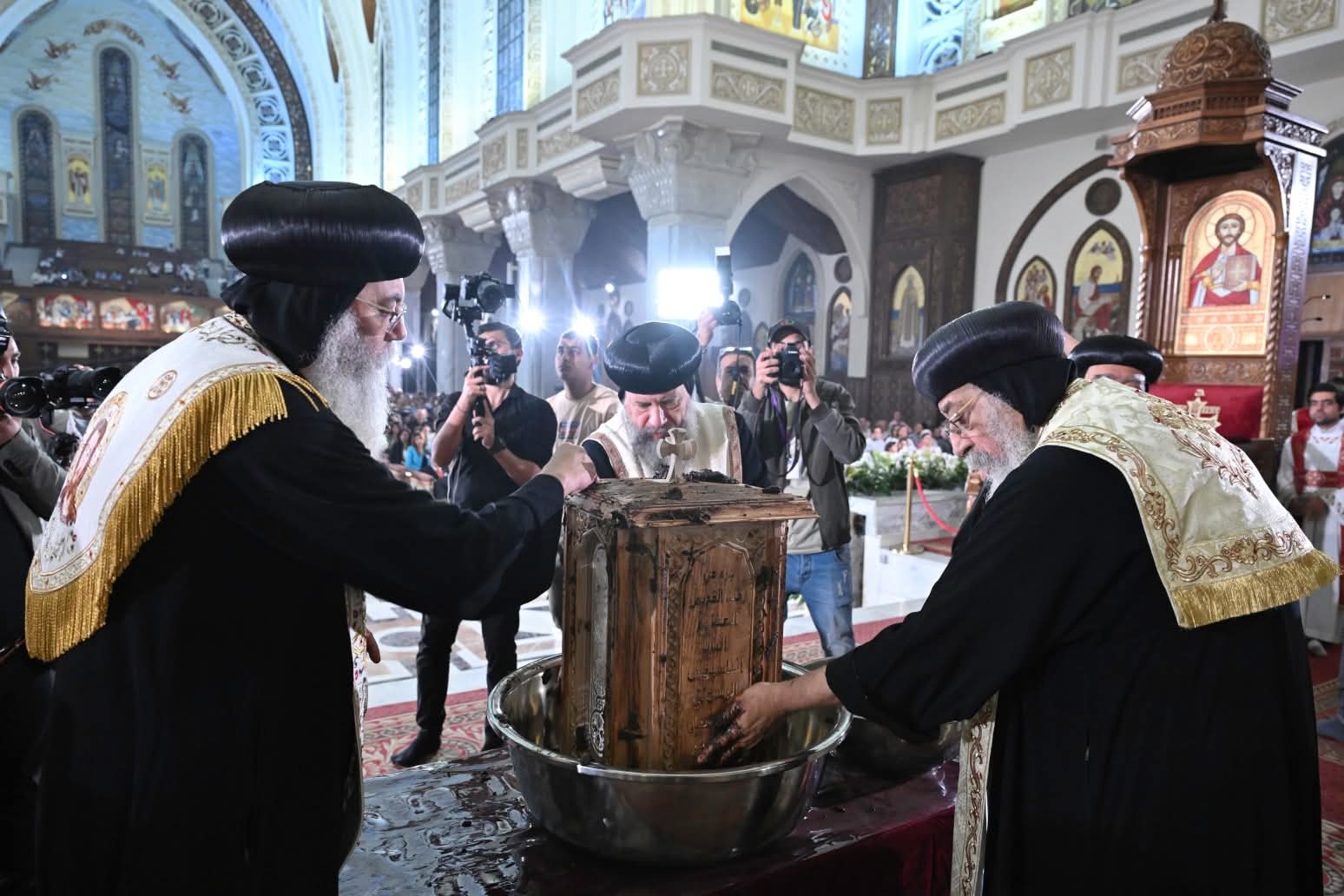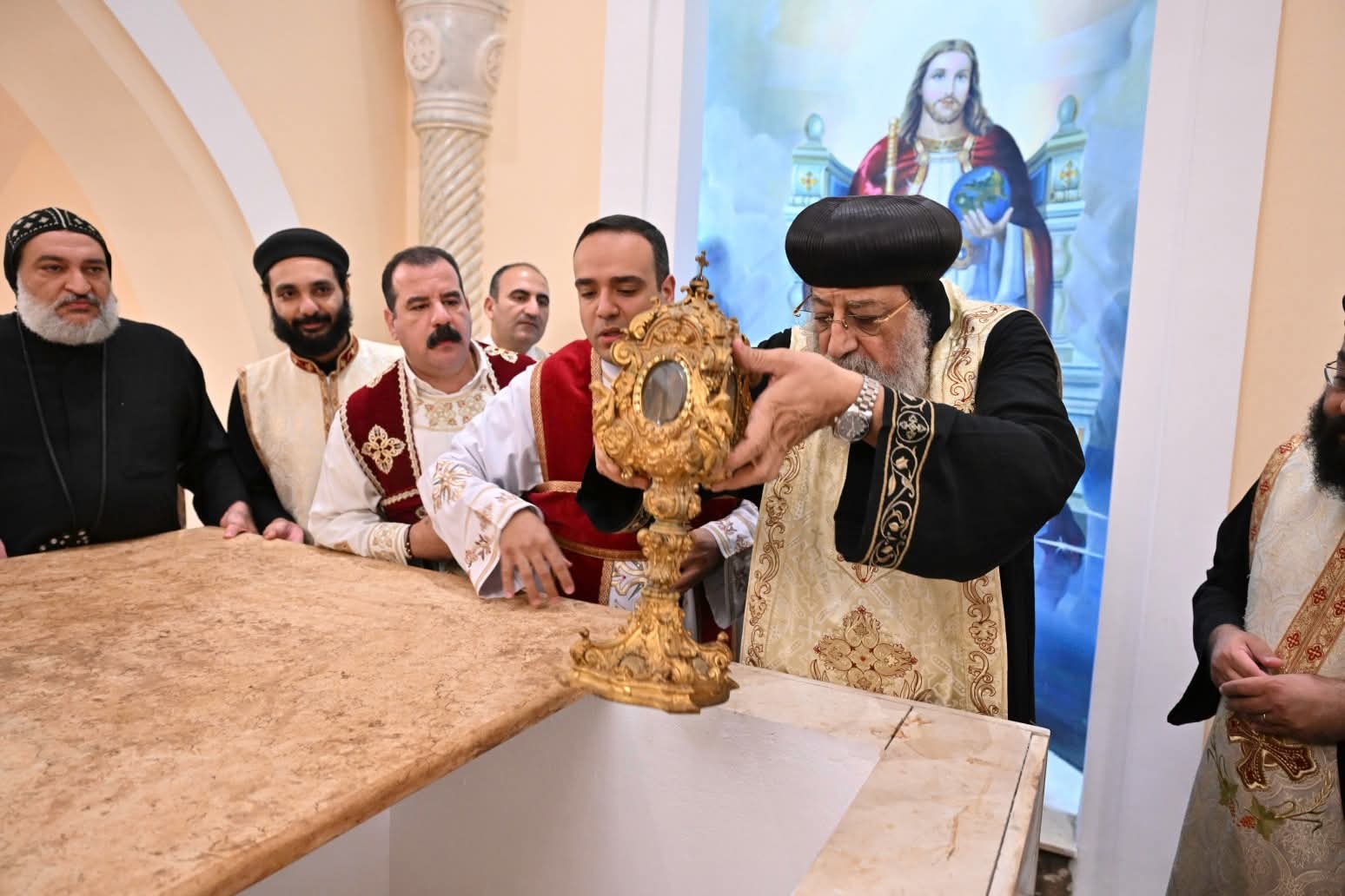 وصلى قداسة البابا صلوات العشية وطَيَّبَ الرفات بمشاركة الآباء المطارنة والأساقفة ثم وضع الكأس التي تحويها في صندوق خشبي جديد صمم خصيصًا لها.