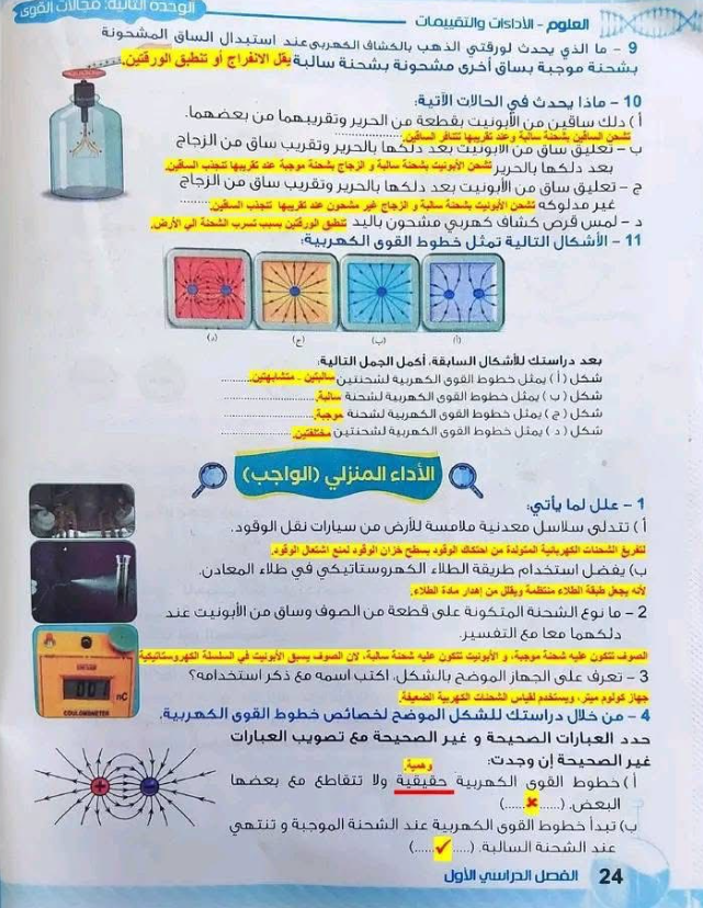 حل كتاب التقييمات للصف الثاني الإعدادي علوم