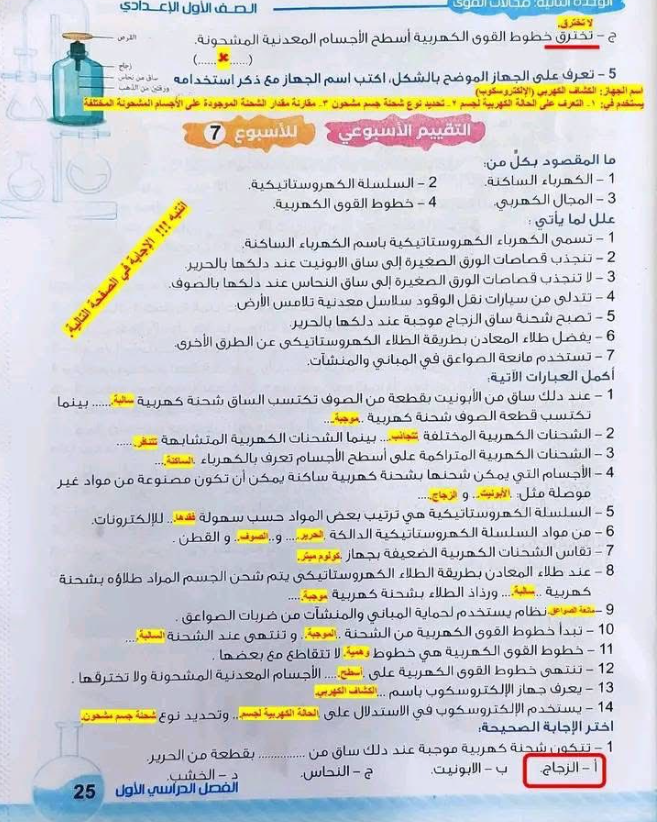 كما يستطيع طلاب الصف الثاني الاعدادي الاطلاع على حل التقييم الأسبوعي السابع مادة العلوم للصف الثاني الإعدادي ليساعدهم ذلك على مراجعة ما تعلموه خلال الفصل الدراسي والتأكيد على فهمهم لدروس المنهج الخاصة بمادة العلوم من خلال الصور التالية: