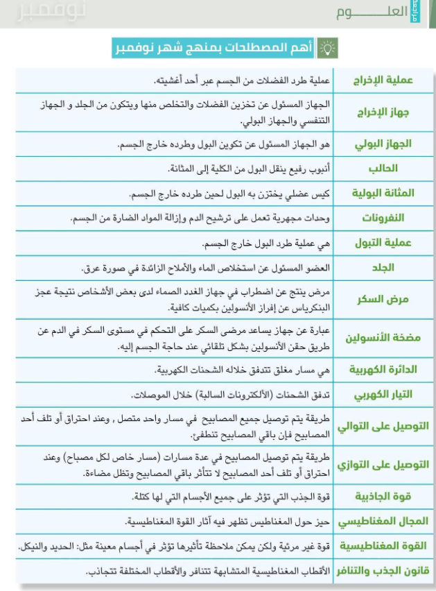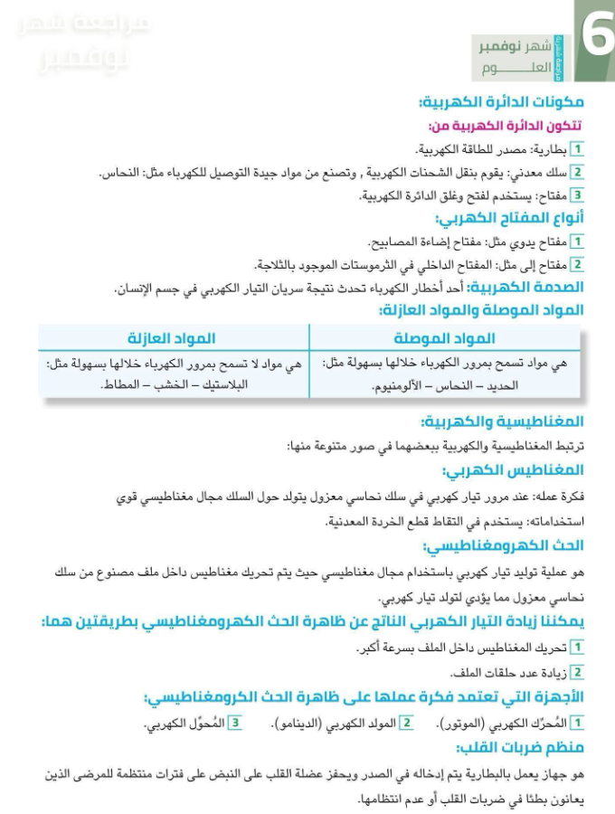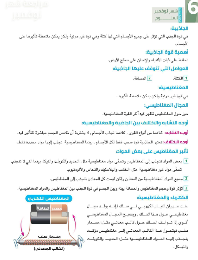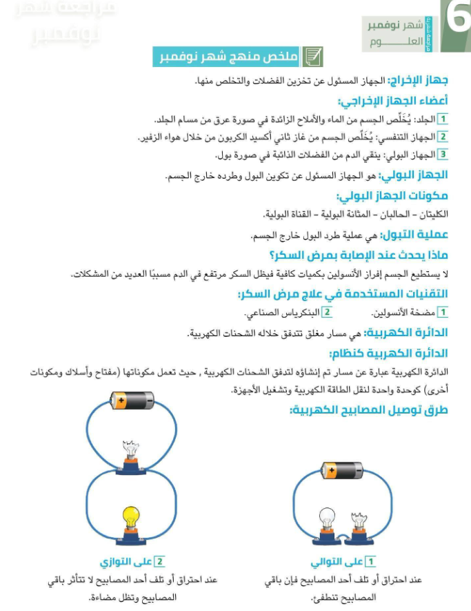 مراجعة شهر نوفمبر للصف السادس الابتدائي علوم