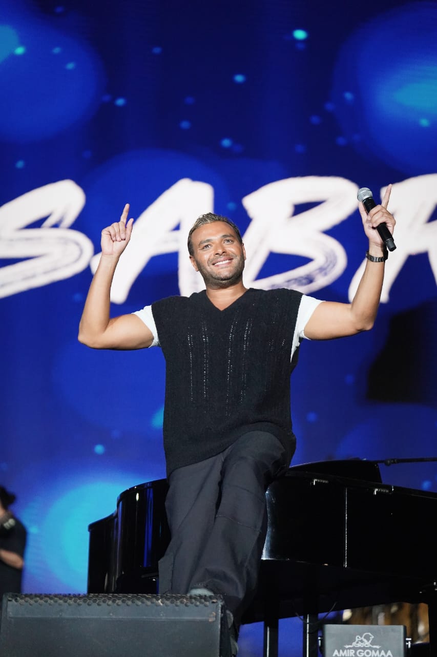 وصعد رامي صبري على المسرح عبر مصعد "هيدروليكي" من الأسفل إلى الأعلى، على نغمات أغنيته الشهيرة "كل حاجة فيها حلوة" وسط هتافات الجمهور.