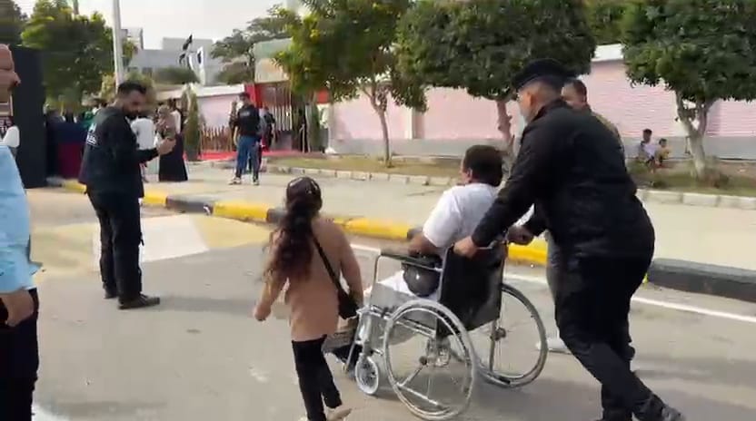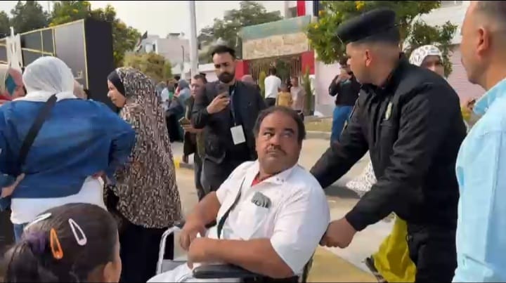 أدلى مواطن من ذوي الهمم بصوته الانتخابي على كرسي متحرك في انتخابات مجلس النواب بالمدرسة البريطانية بمنطقة التجمع الأول.