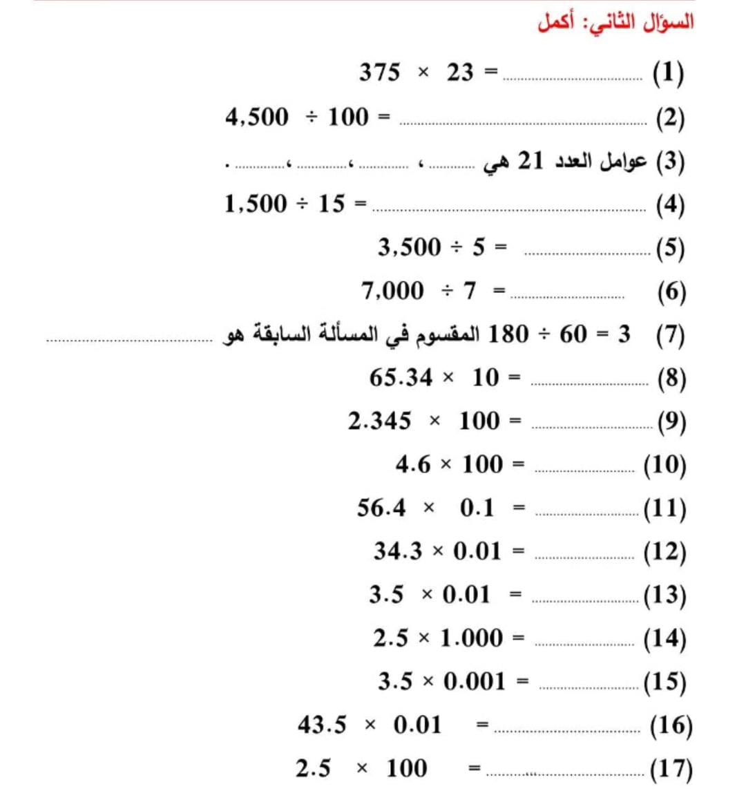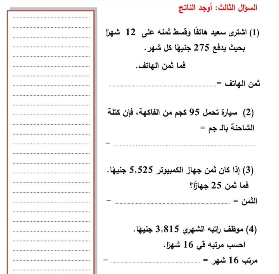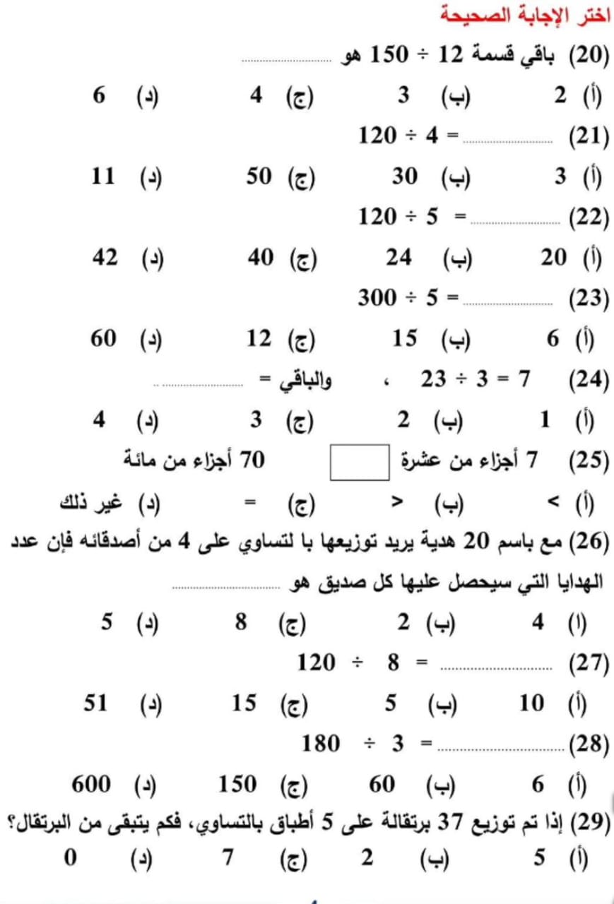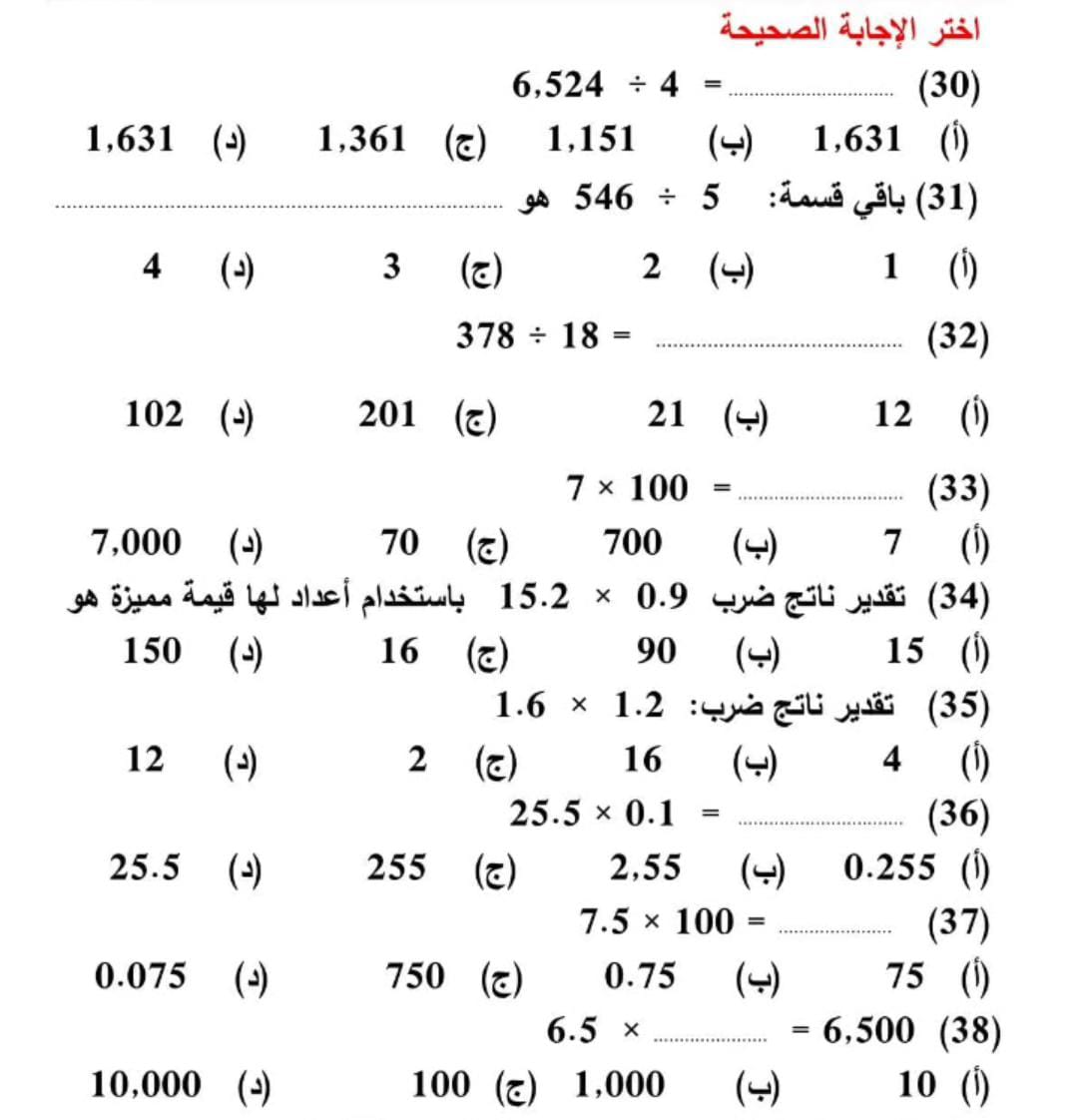 ونستعرض نماذج امتحانات شهر نوفمبر للصف الخامس الابتدائي في مادة الرياضيات للعام الدراسي 2025-2026 من خلال الصور التالية: