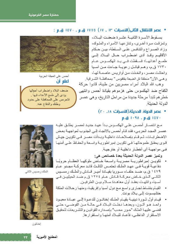 شرح درس ملامح من تاريخ مصر القديمة للصف الأول الثانوي