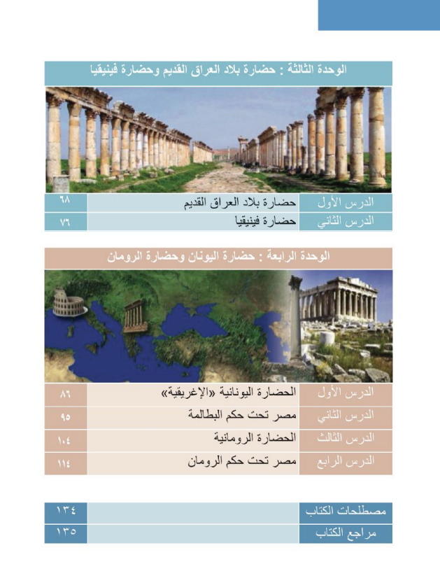 الوحدة الثالثة “حضارة بلاد العراق القديم وحضارة فينيقيا”