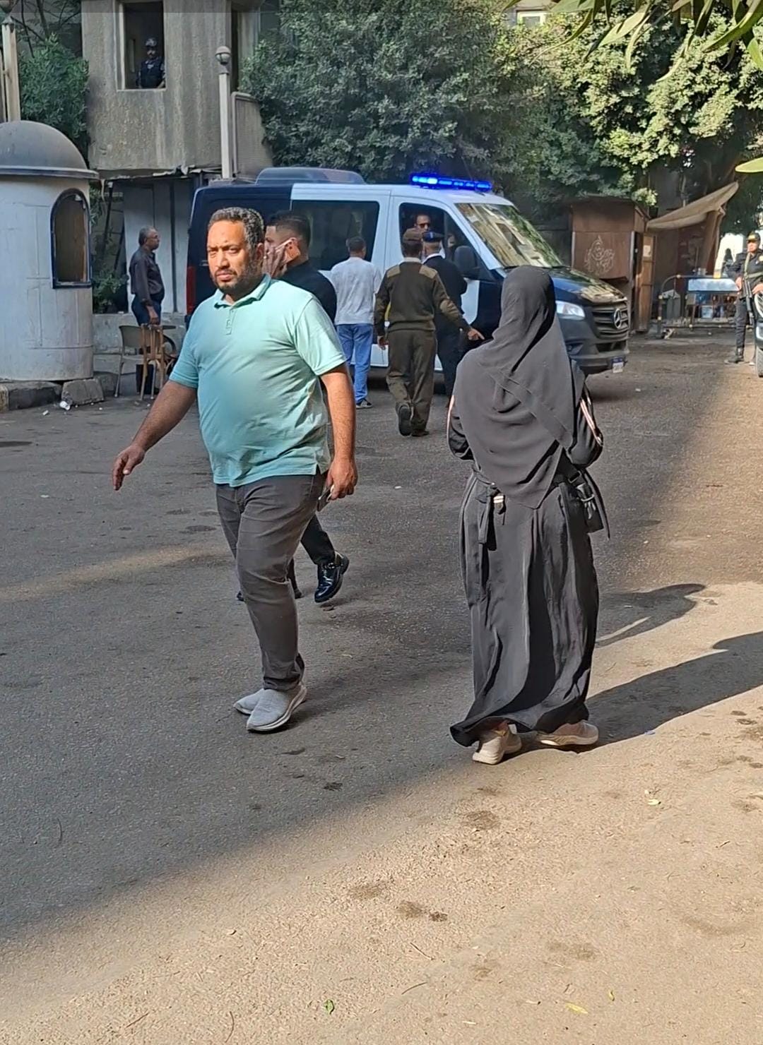 وحضر المتهم في سيارة شرطة بعدما تم ترحيله من قسم شرطة أبو النمرس، بينما كان صديقه في انتظاره أمام المحكمة.