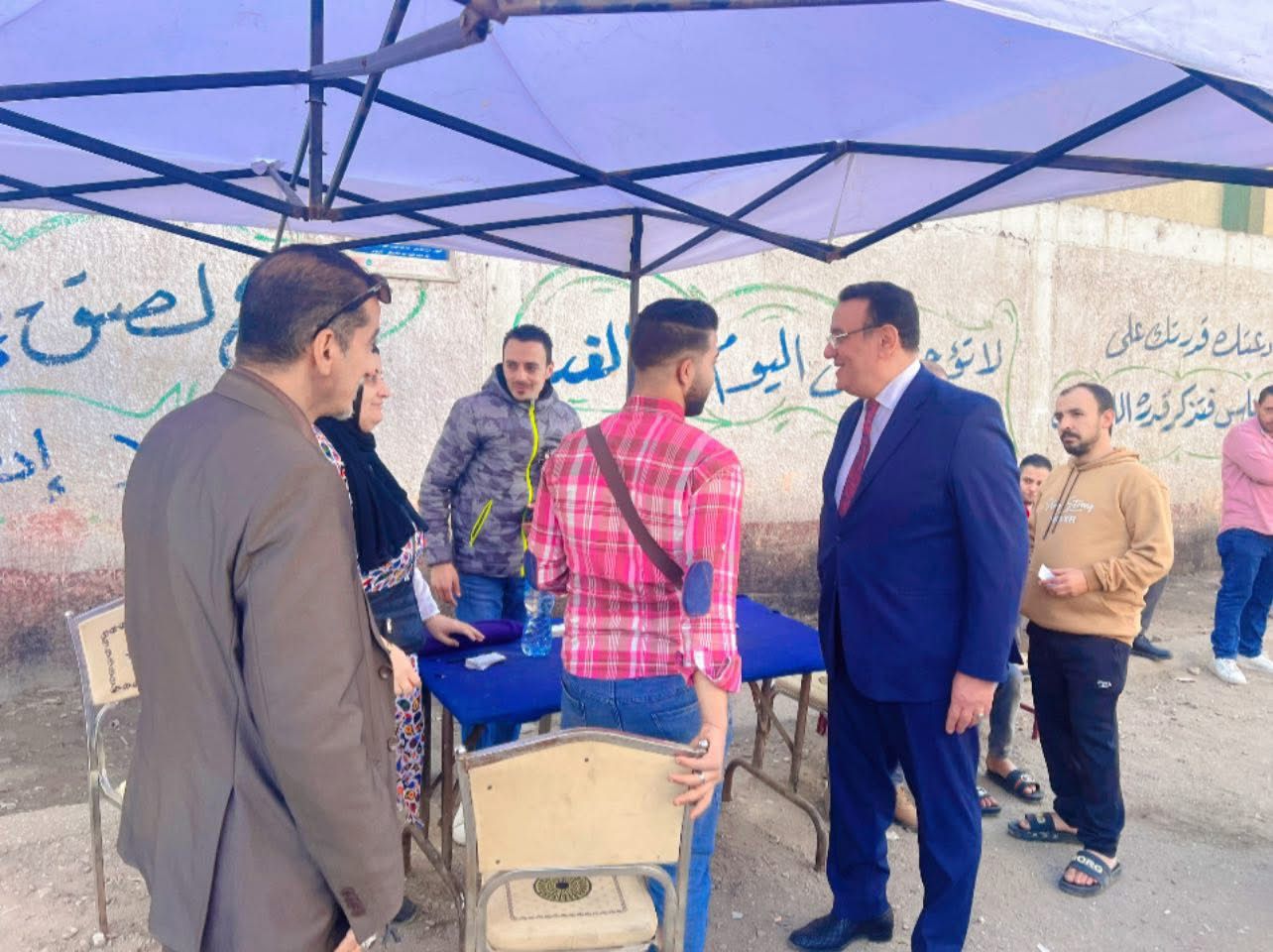 استقبل الأهالي والناخبين بنطاق الدائرة، الدكتور صلاح حسب الله، خلال توجهه للإدلاء بصوته، وسط مشهد لافت، وقام بمصافحتهم والاستماع إلى كلماتهم الترحيبية الحارة.