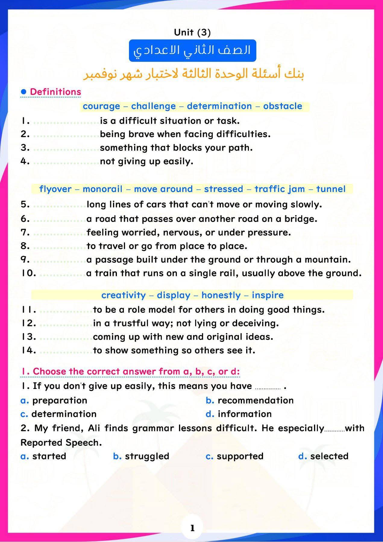 كما يستطيع طلاب الصف الثاني الاعدادي الاطلاع على مراجعة شهر نوفمبر 2025 مادة اللغة الانجليزية من خلال الصور التالية: