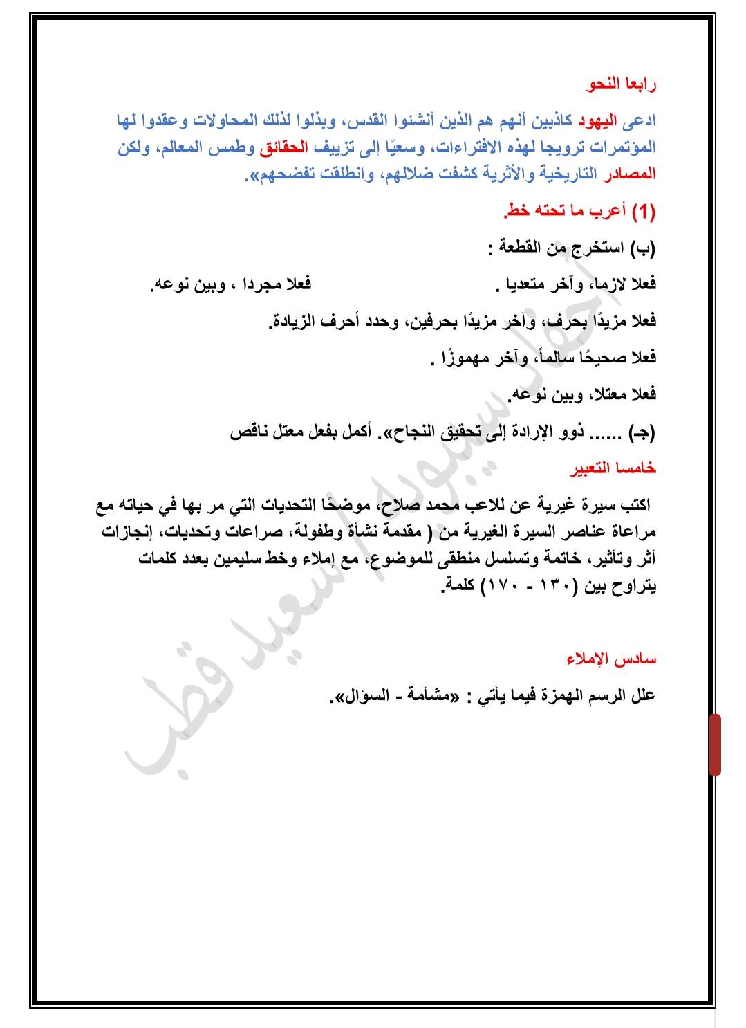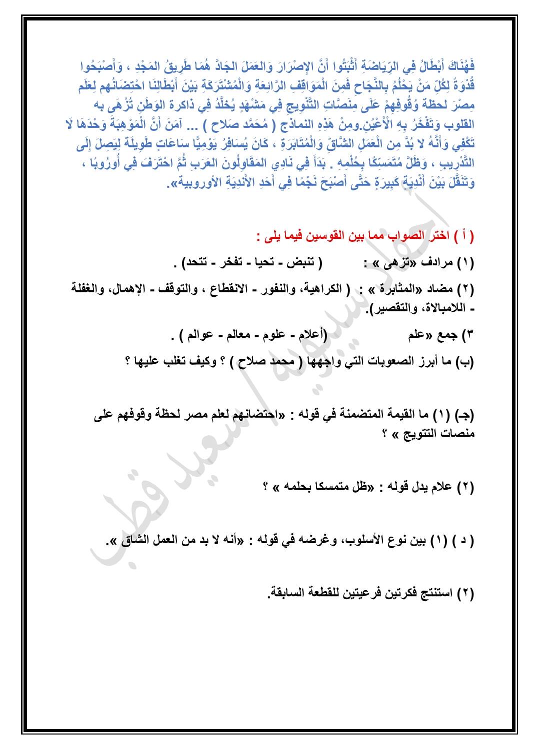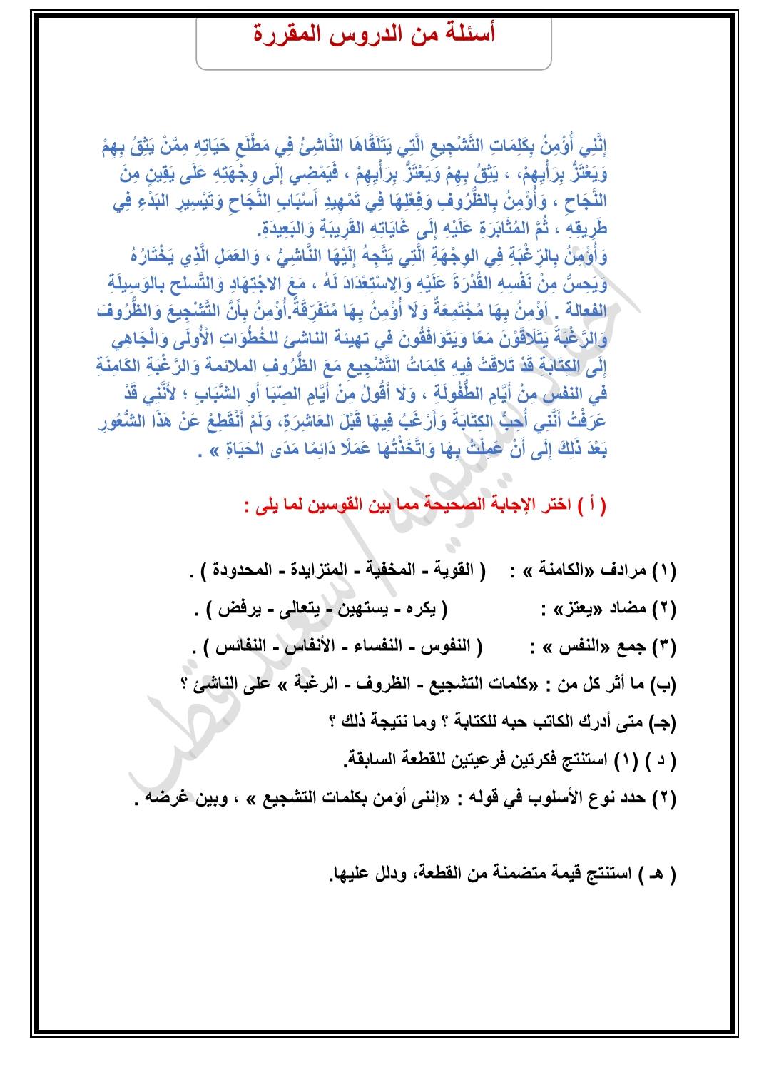 نماذج امتحانات الصف السادس الابتدائي pdf عربي