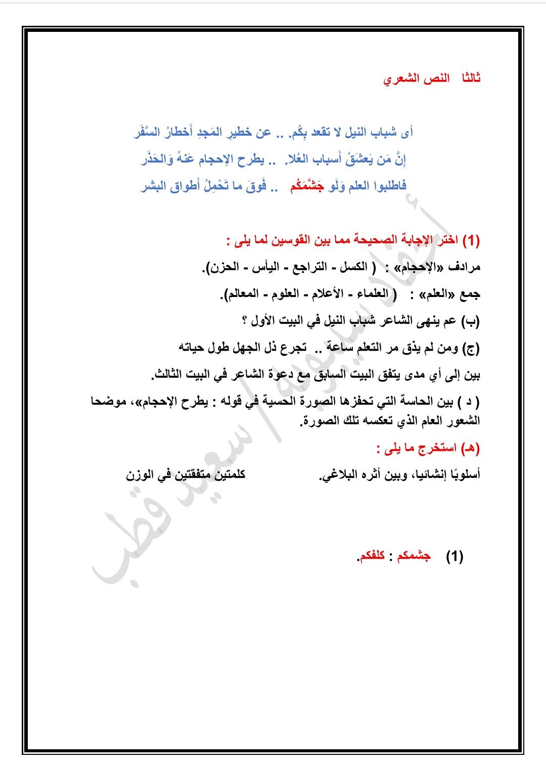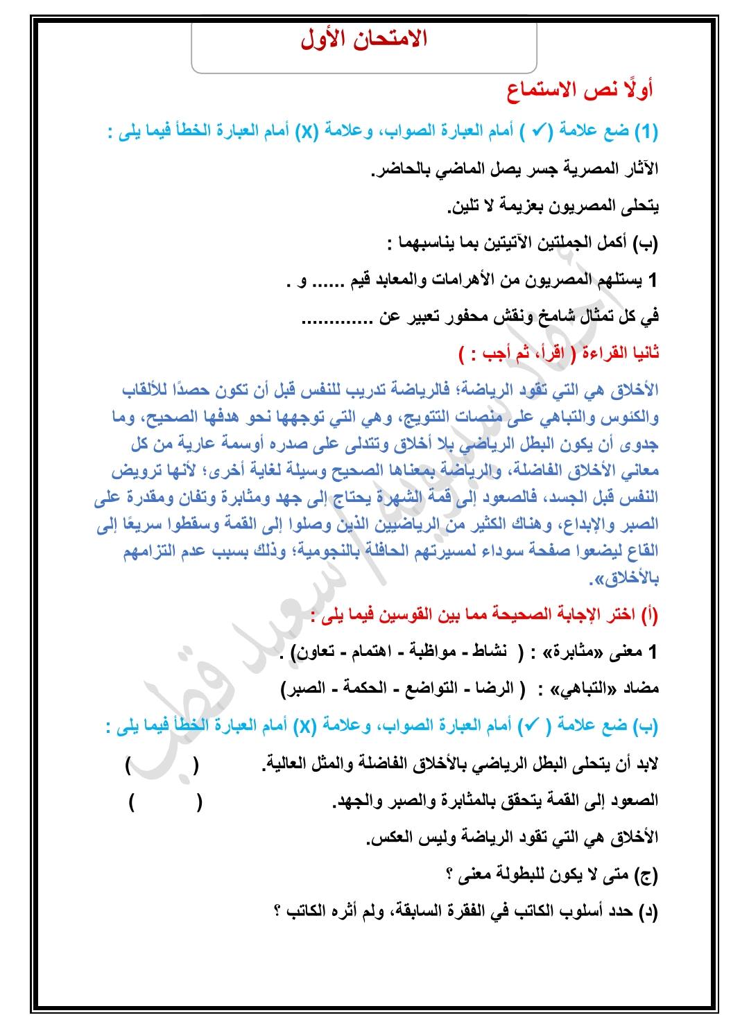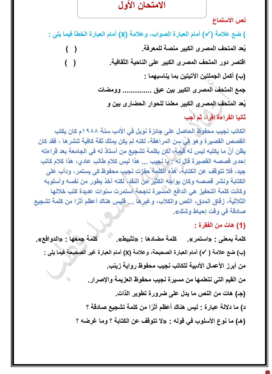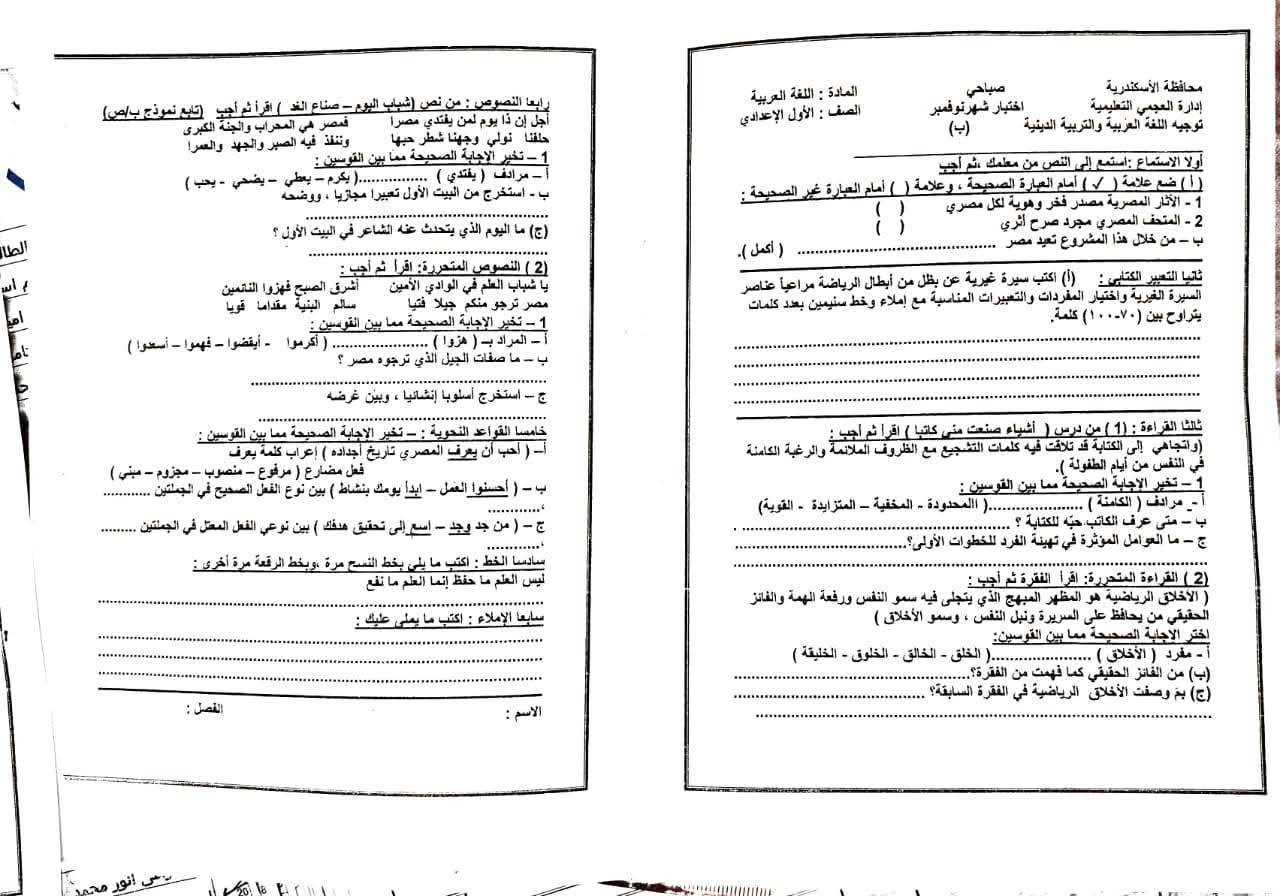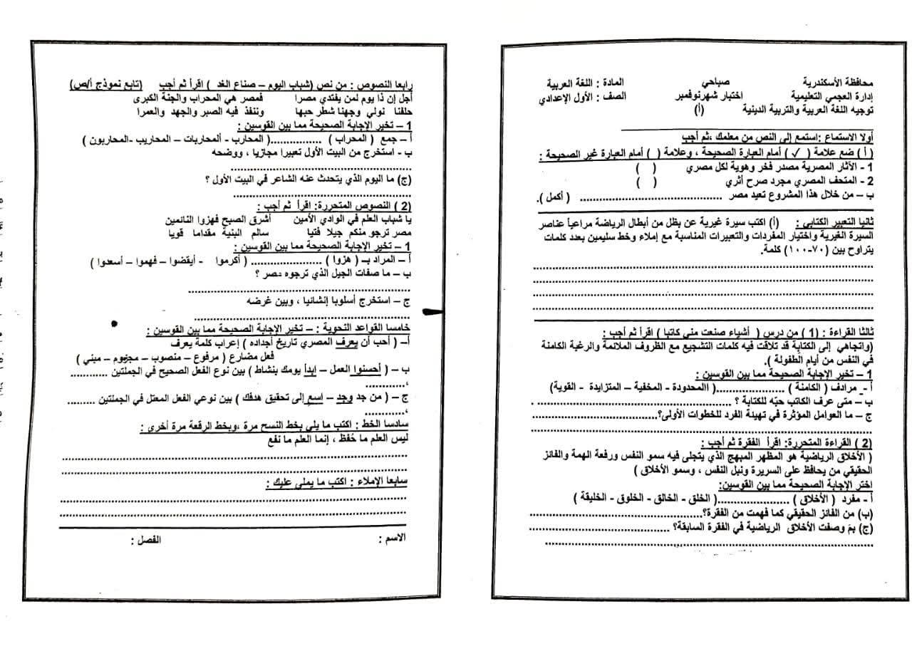 ويستطيع جميع الطلاب الاطلاع على امتحان شهر نوفمبر للصف الأول الإعدادي لغة عربية 2025 كالتالي: