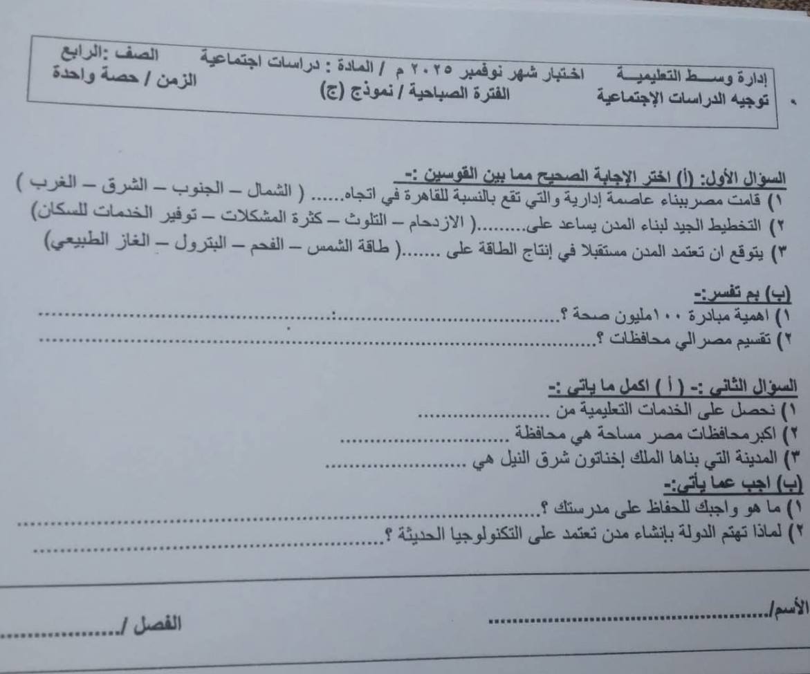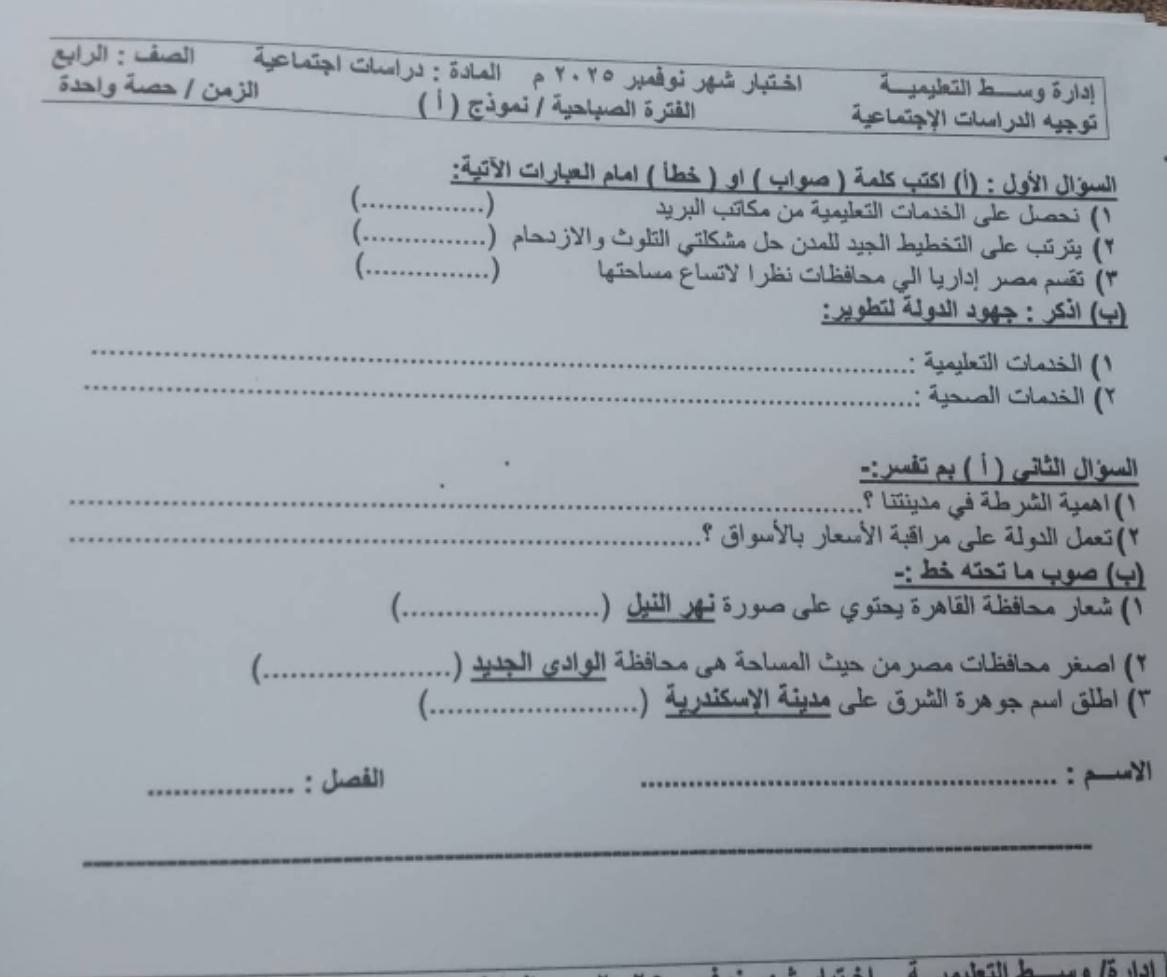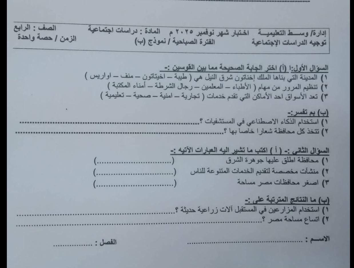 بالتزامن مع بدء امتحانات شهر نوفمبر الفصل الدراسي الأول للعام الدراسي 2025-2026، يهتم الطلاب بحل نماذج امتحانات دراسات للصف الرابع الابتدائي للاستعداد لامتحانات شهر نوفمبر وكذلك لامتحانات منتصف العام الدراسي.