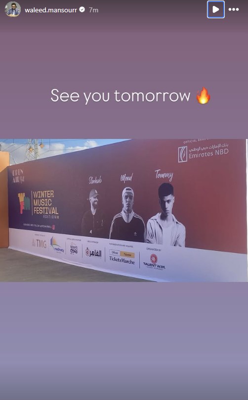 كما روج المنتج وليد منصور، عبر حسابه الرسمي على “إنستجرام”، البوستر الدعائي للحفل، وكتب: “نراكم غدا”.