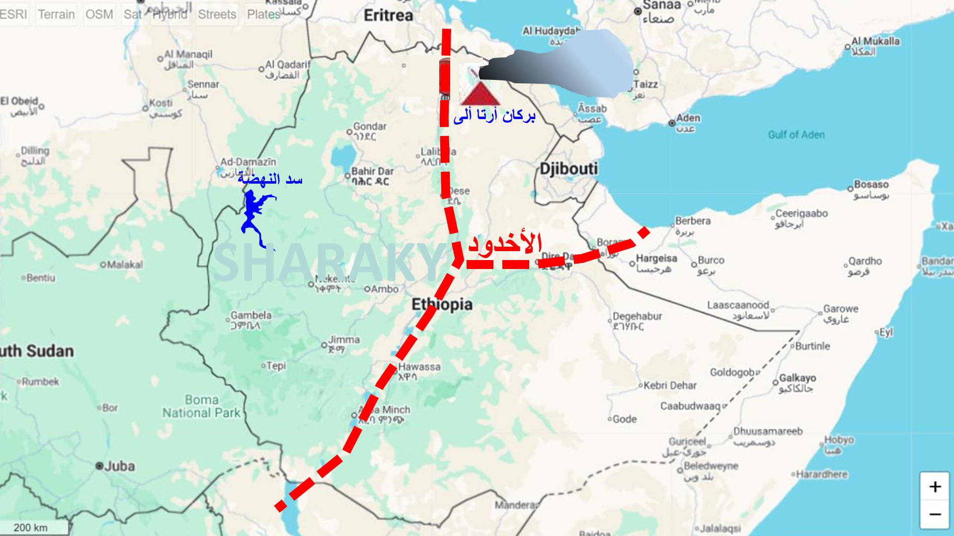 وقال أستاذ الجيولوجيا والموارد المائية، الدكتور عباس شراقي، إن هذا البركان يبعد عن سد النهضة مسافة 650 كم، وبالتالي هذه المسافة لا تؤثر على السد أو على أحواض نهر النيل.
