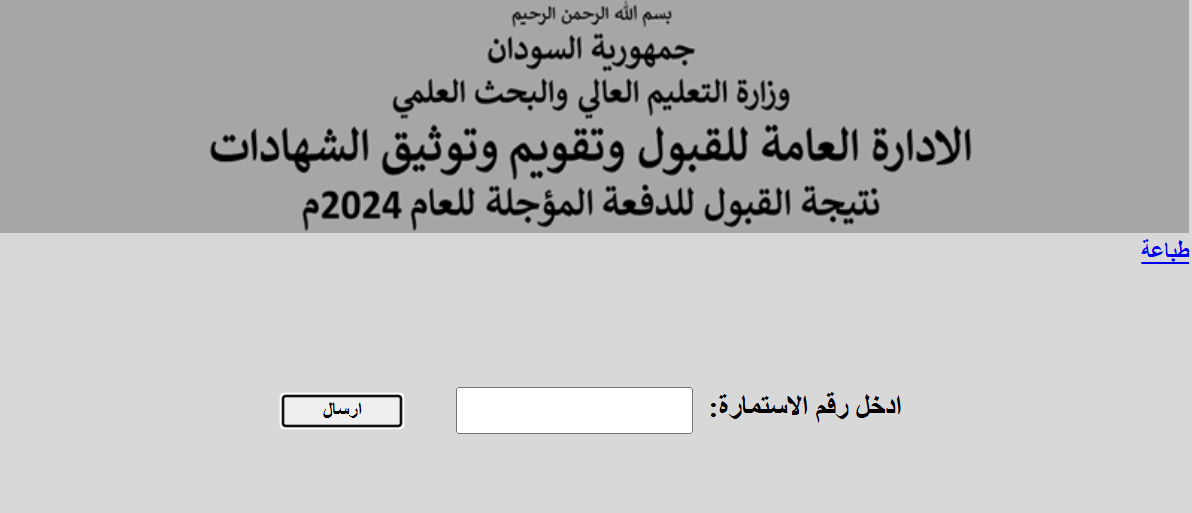 وفي إطار ذلك وفرت وزارة التعليم العالي والبحث العلمي السودانية خدمة إلكترونية تُمكن الطلاب من الاستعلام عن نتيجة القبول في الجامعات السودانية للعام الدراسي 2024-2025 بسهولة ويسر، وذلك من خلال الدخول على الرابط التالي من هنــــــــــا، مما يسهل متابعة القبول دون الحاجة للتوجه شخصيًا إلى مقار الجامعات أو مكاتب التسجيل.
