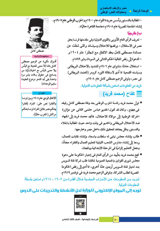 - الوحدة الرابعة: مصر والزحف الاستعماري ومحاولات التحرر الوطني.