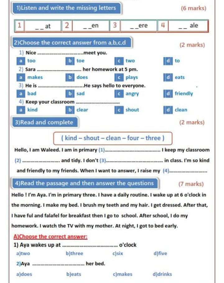 تعد نماذج امتحانات إنجليزي للصف الثالث الابتدائي 2025-2026، من أهم الوسائل التي تساعد الطلاب على المراجعة بشكل أفضل وفهم طبيعة الأسئلة المتوقعة.