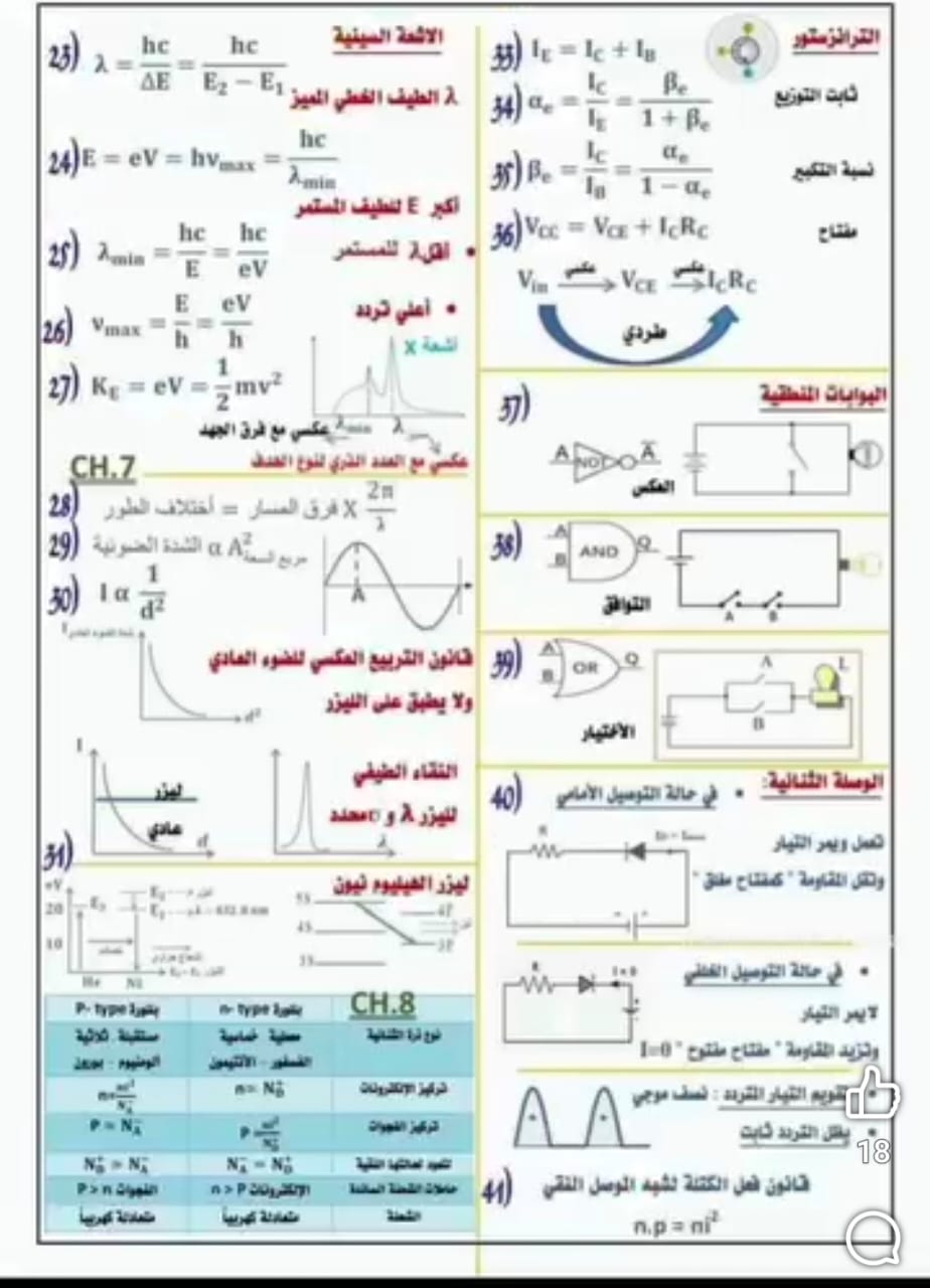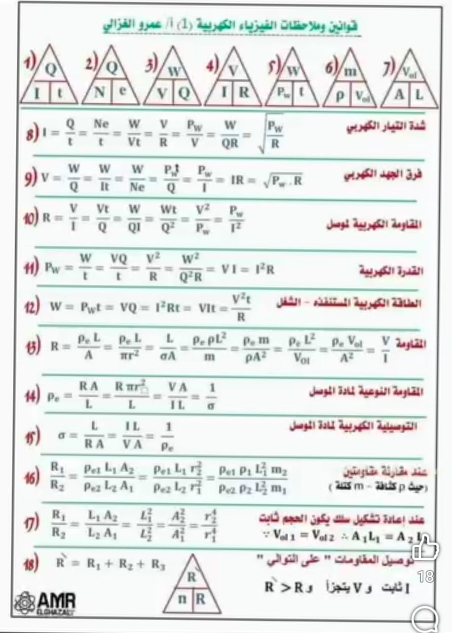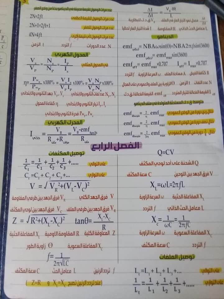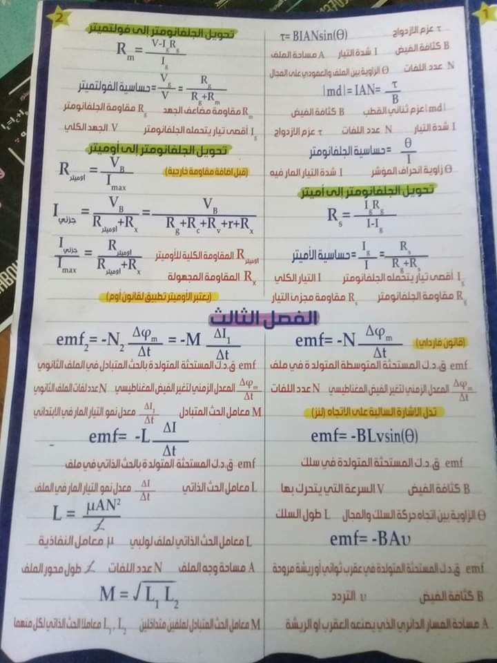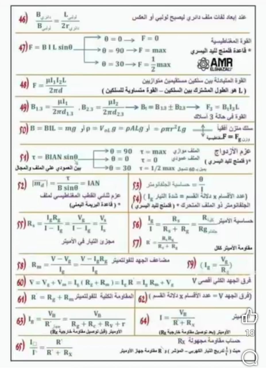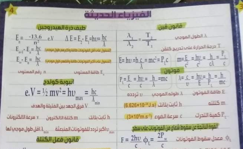 وجاءت قوانين الفيزياء للصف الثالث الثانوي كالتالي: