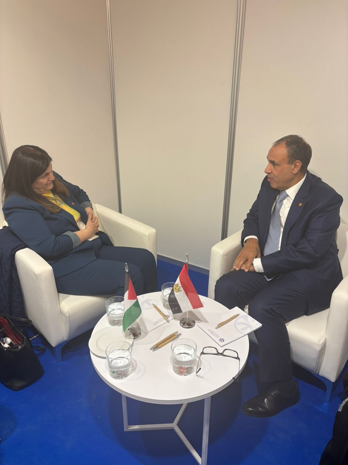 وزير الخارجية والهجرة وشئون المصريين بالخارج، الدكتور بدر عبد العاطي ووزيرة خارجية دولة فلسطين، فارسين أغابكيان شاهين