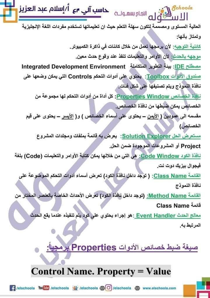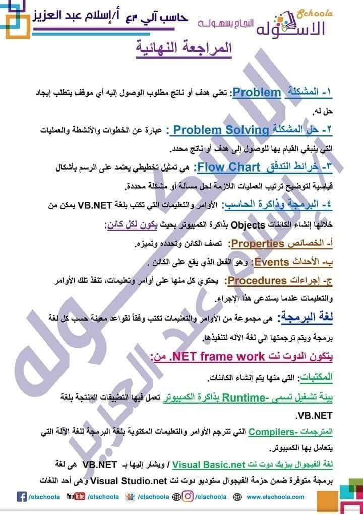 ويتمكن طلاب المرحلة الإعدادية الدراسة لمادة الحاسب الآلي من خلال مذكرة ومراجعة حاسب آلي للصف الثالث الاعدادي كالتالي: