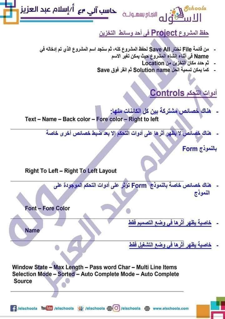 مادة حاسب آلي للصف الثالث الاعدادي