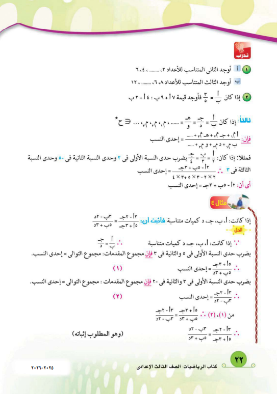شرح درس التناسب للصف الثالث الإعدادي 2025