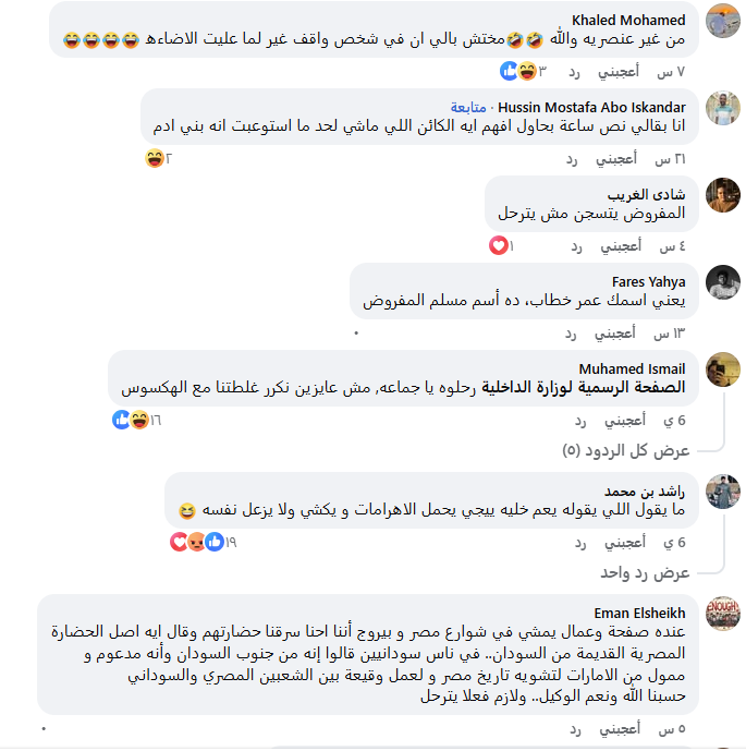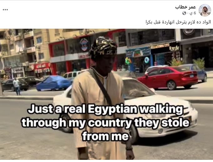 حالة من الغضب سادت بين مستخدمي مواقع التواصل الاجتماعي خلال الأيام الأخيرة، بسبب محتوى داعم للأفروسنتريك نشره لاجئ سوداني مقيم بمصر، ادعى أنه من سلالة بناة الأهرام، ووصف المصريين بالغزاة، ليطالب النشطاء بترحيله.