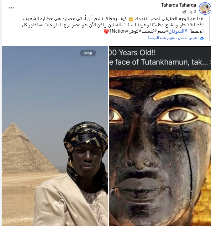 وكتب في أحد منشوراته الموجهة للغرب: "هل كنت تعلم أن السودانيين هم المصريين الحقيقيين، وهم بناة الأهرامات؟".