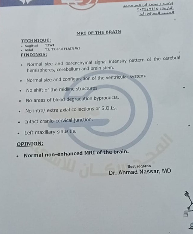 وأضاف إبراهيم، أنه ذهب للفحص إلى أكثر من طبيب بتخصصات مختلفة، كما خضع للعديد من التحاليل الطبية والإشاعات المقطعية، وكانت المفاجأة بأن تلك الفحوصات تشير إلى أنه لا يعاني من أي أمراض أو مشاكل صحية، كما أوضح أنه فقد قدرته على العمل، بعد فشل العديد من المشاريع الذي خطط لها، قائلاً: “حياتي كلها باظت”.