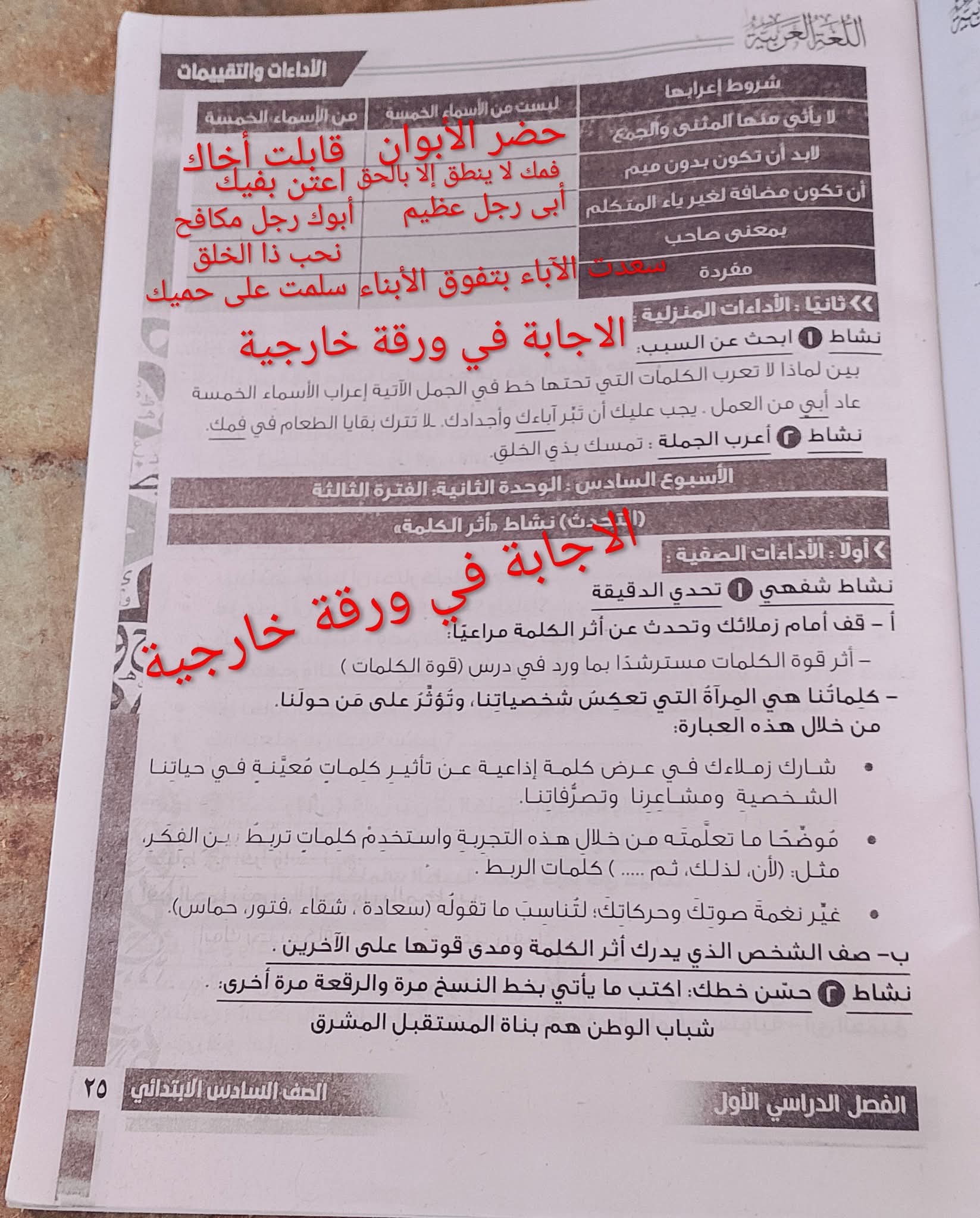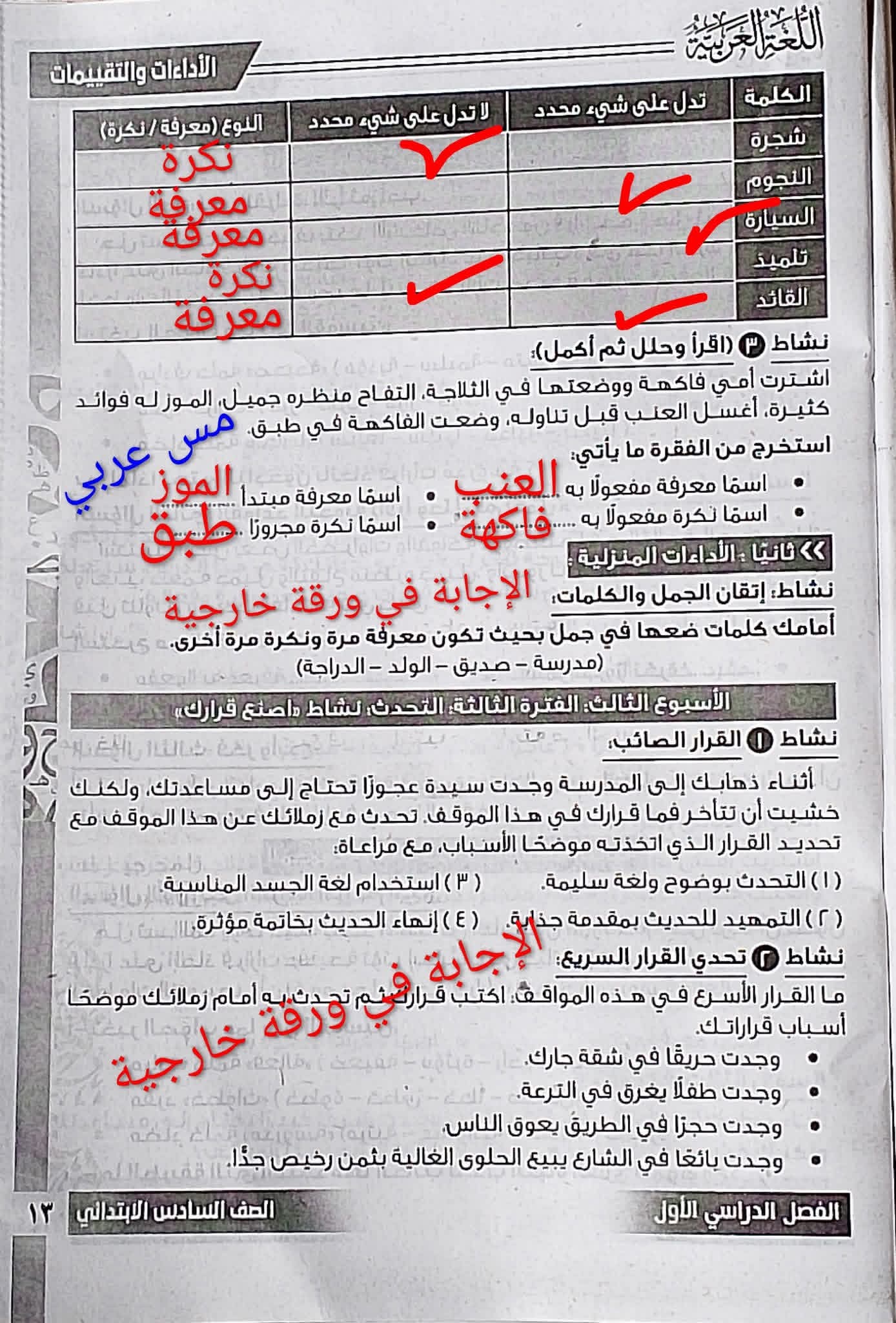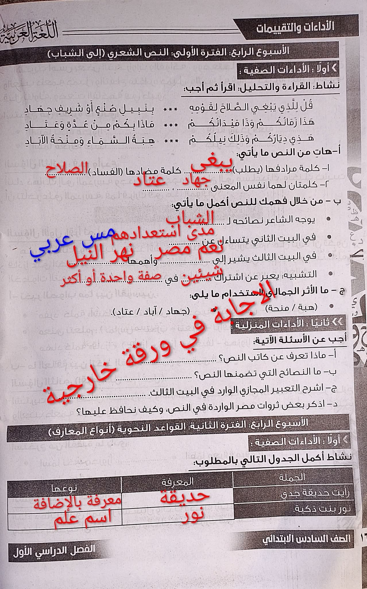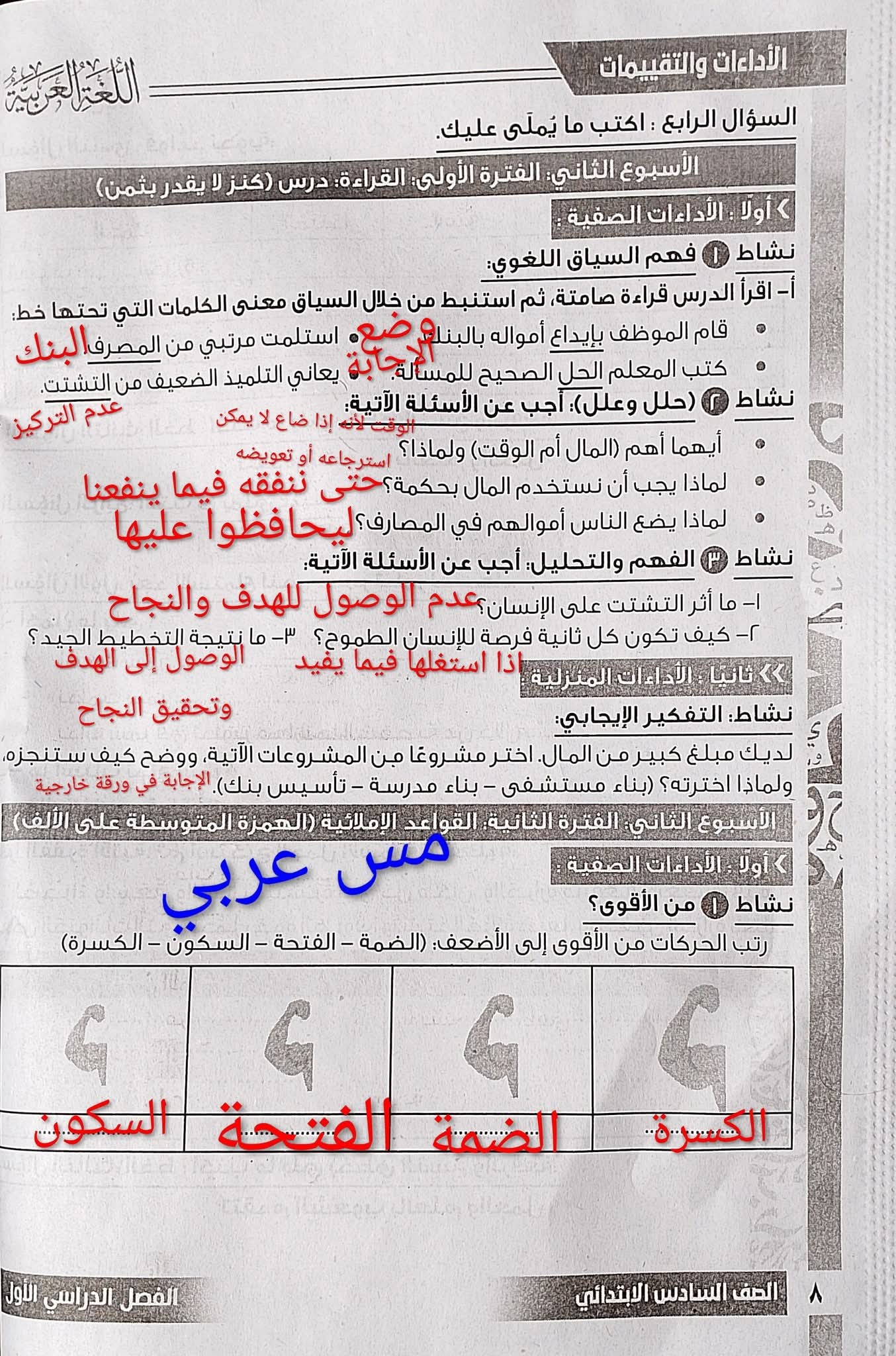 أعلنت وزارة التربية والتعليم والتعليم الفني، حل كتاب التقييمات للصف السادس الابتدائي عربي، الفصل الدراسي الأول للعام الدراسي 2025-2026.