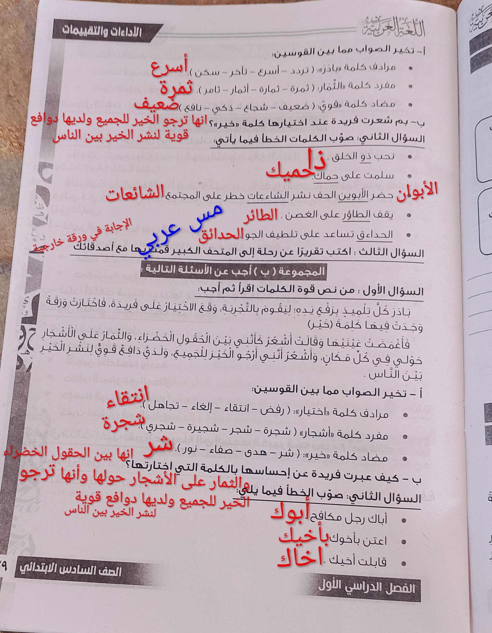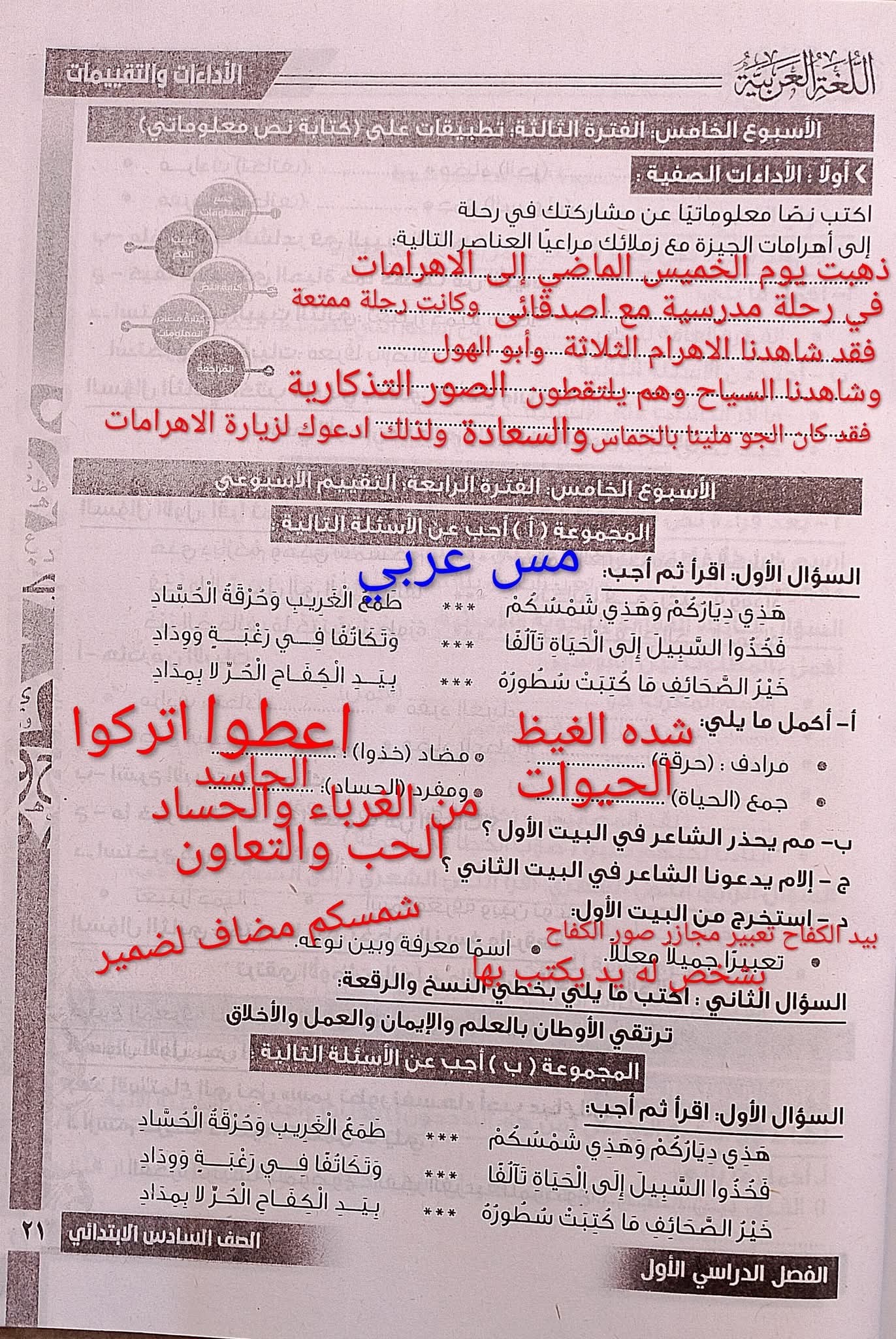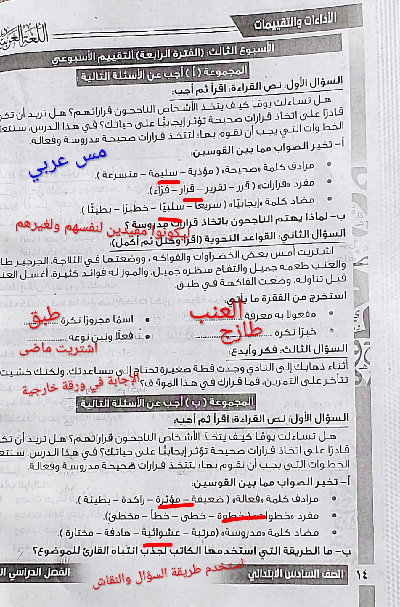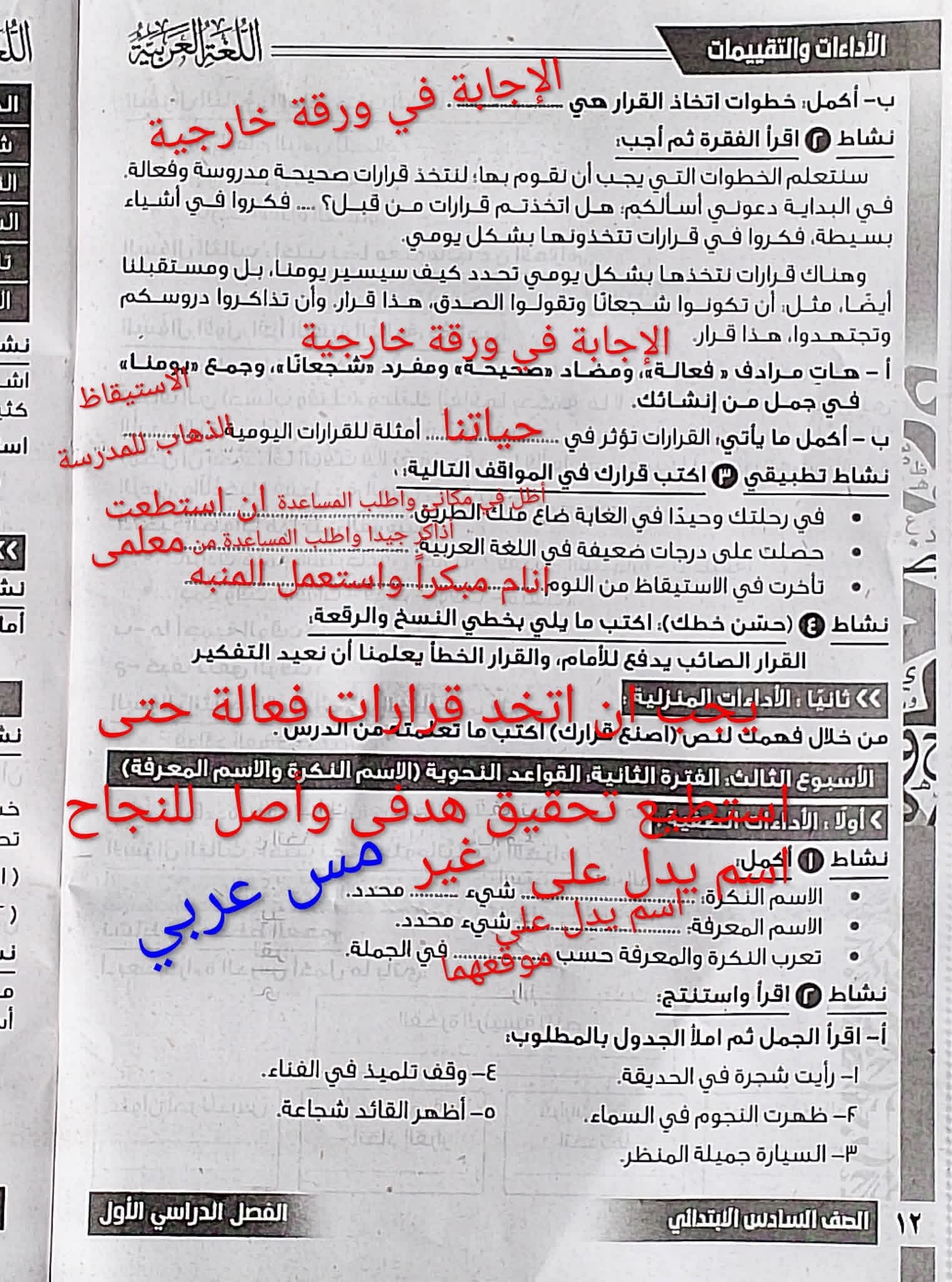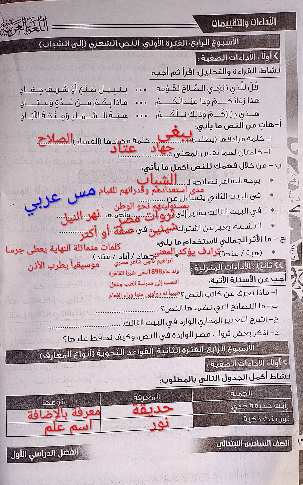 أعلنت وزارة التربية والتعليم والتعليم الفني، حل كتاب التقييمات للصف السادس الابتدائي عربي، الفصل الدراسي الأول للعام الدراسي 2025-2026.