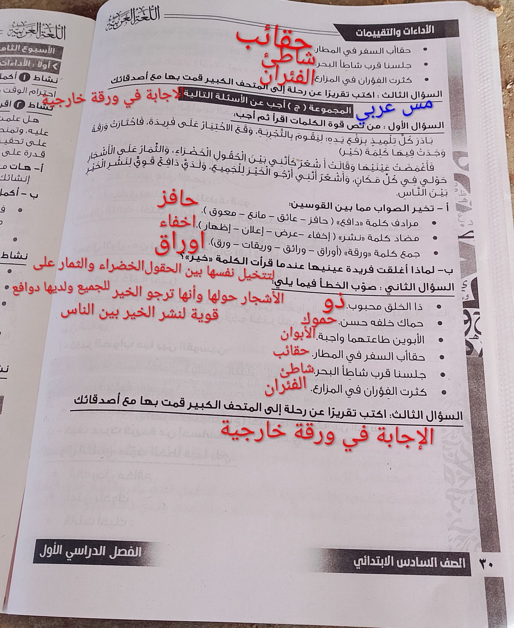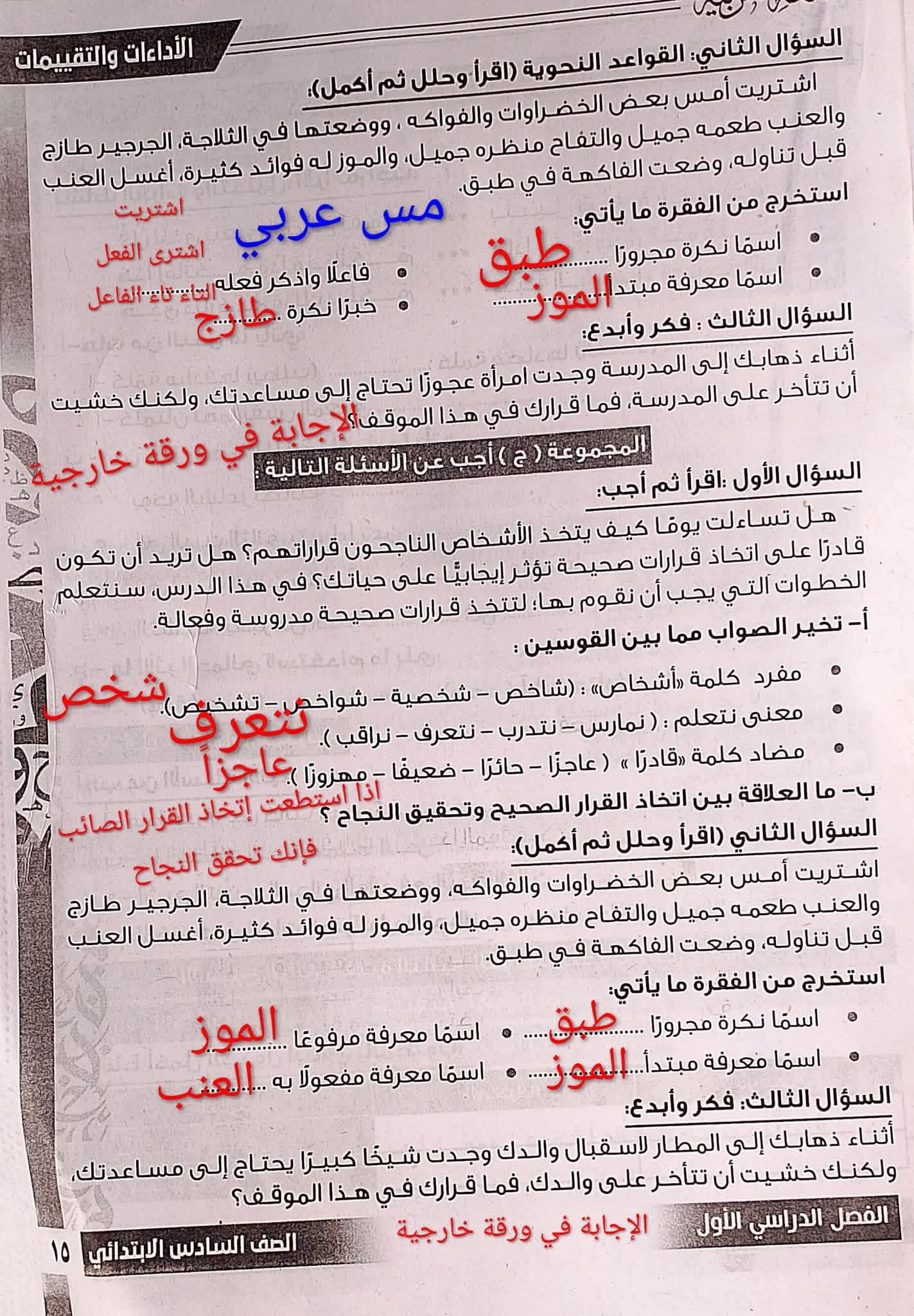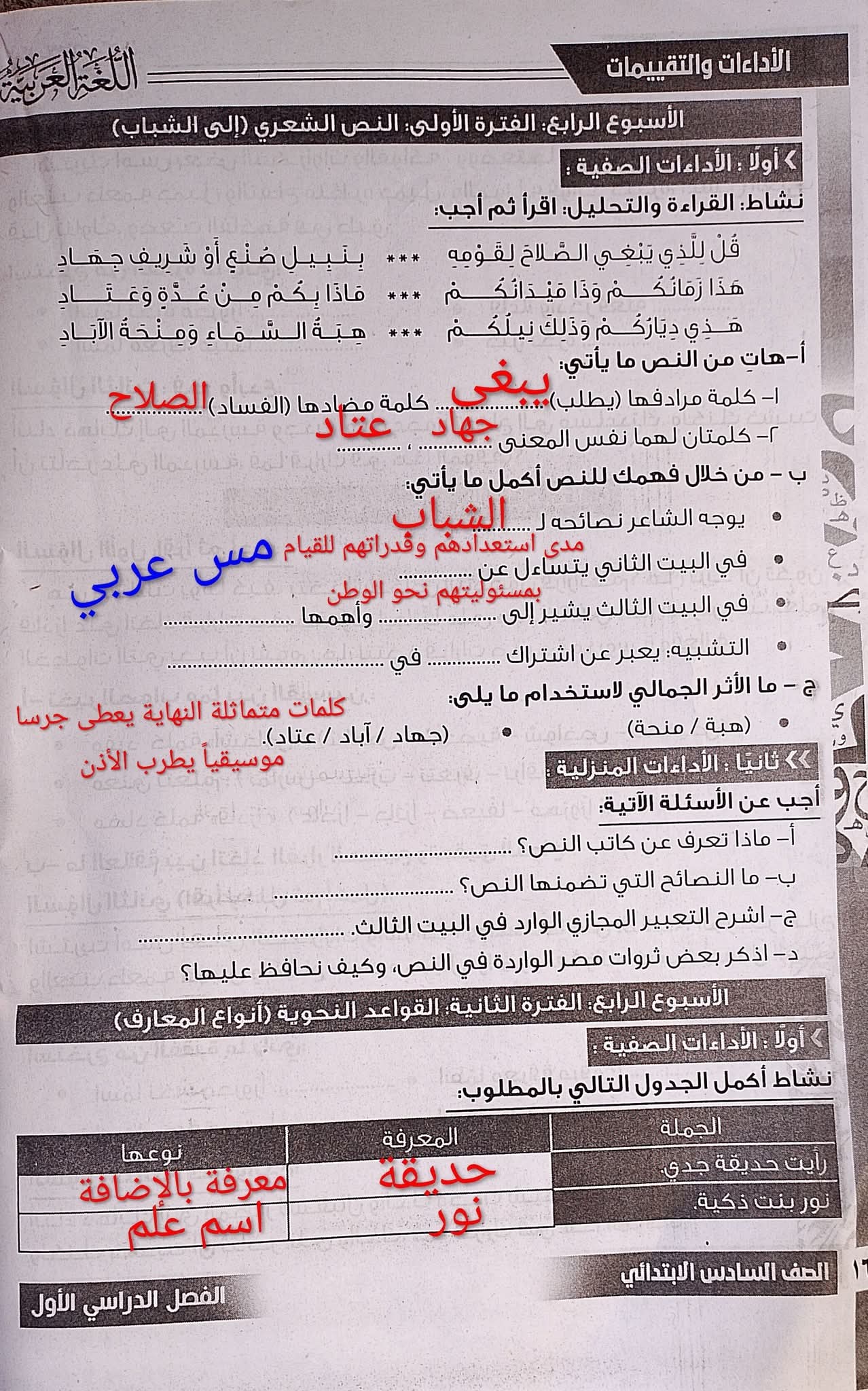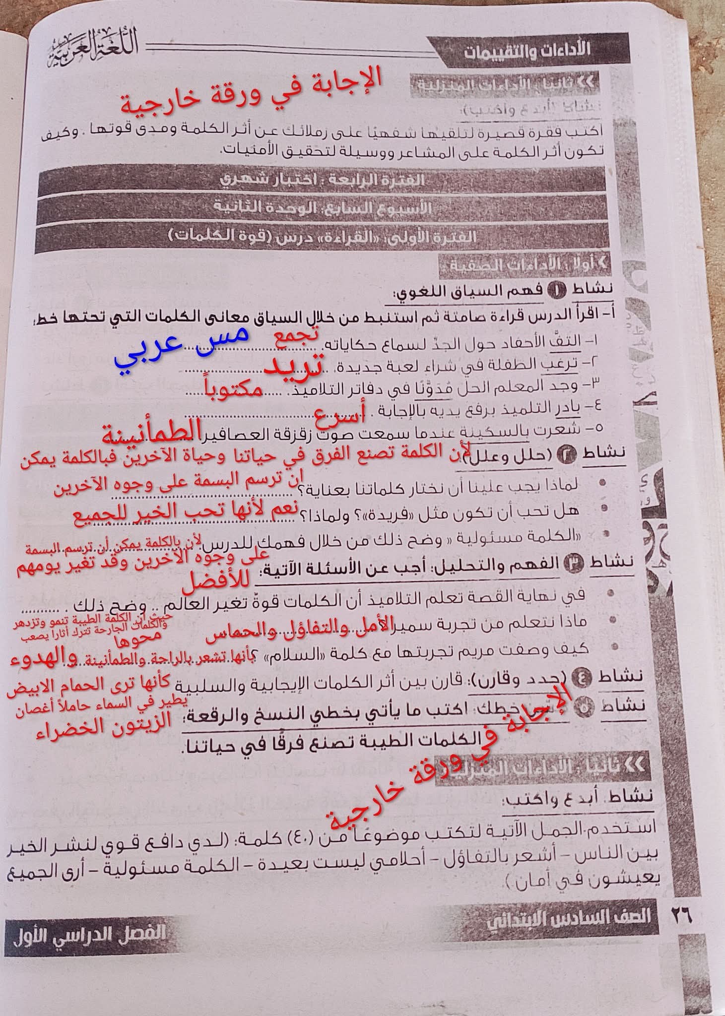 أعلنت وزارة التربية والتعليم والتعليم الفني، حل كتاب التقييمات للصف السادس الابتدائي عربي، الفصل الدراسي الأول للعام الدراسي 2025-2026.