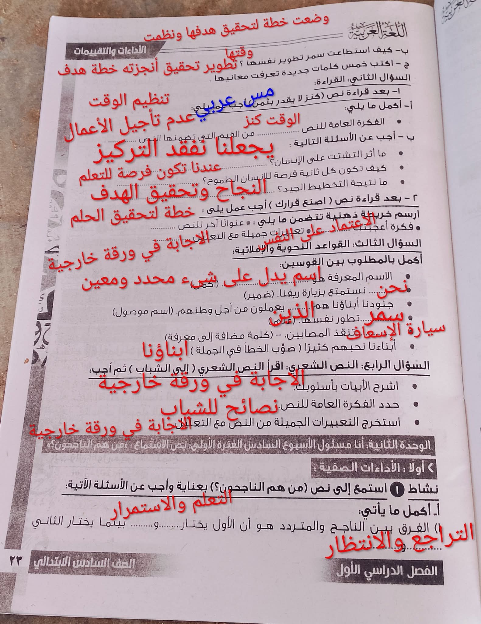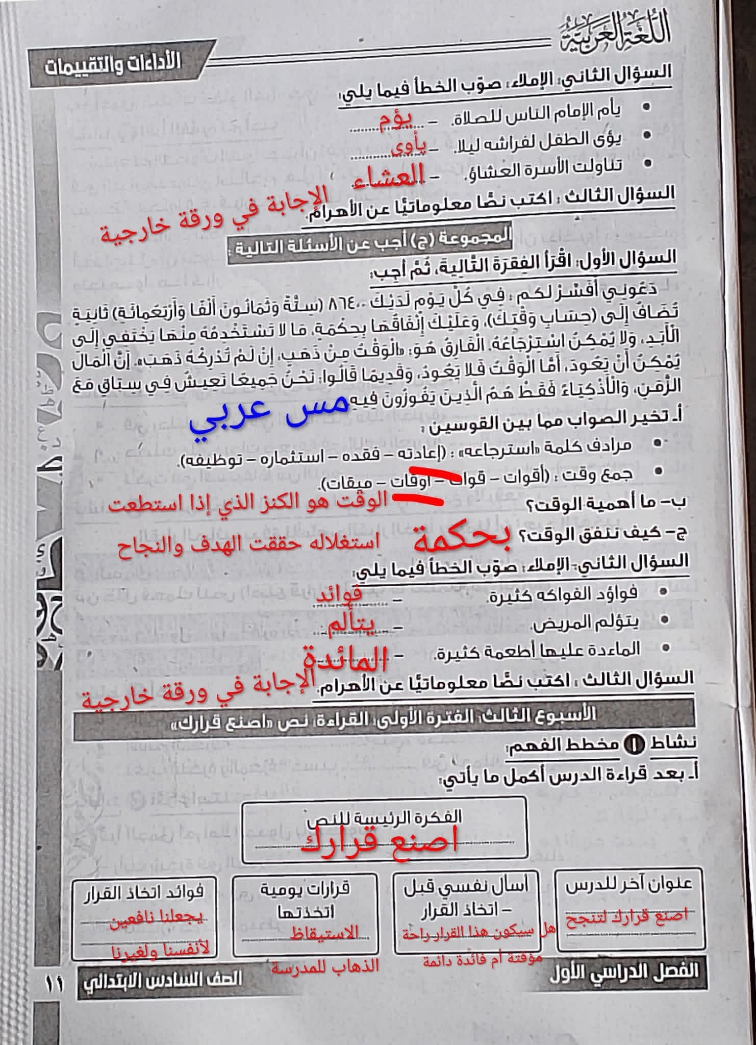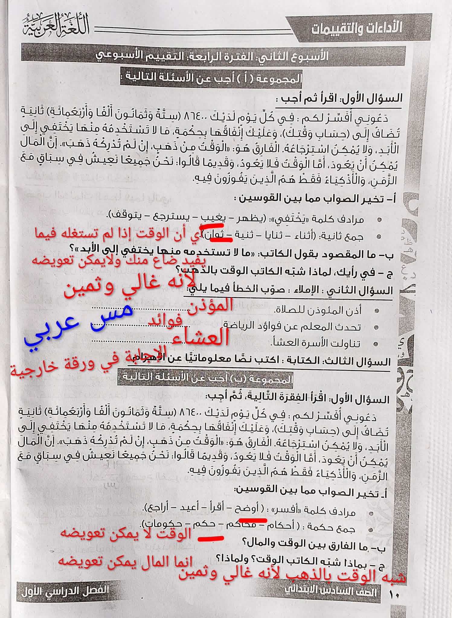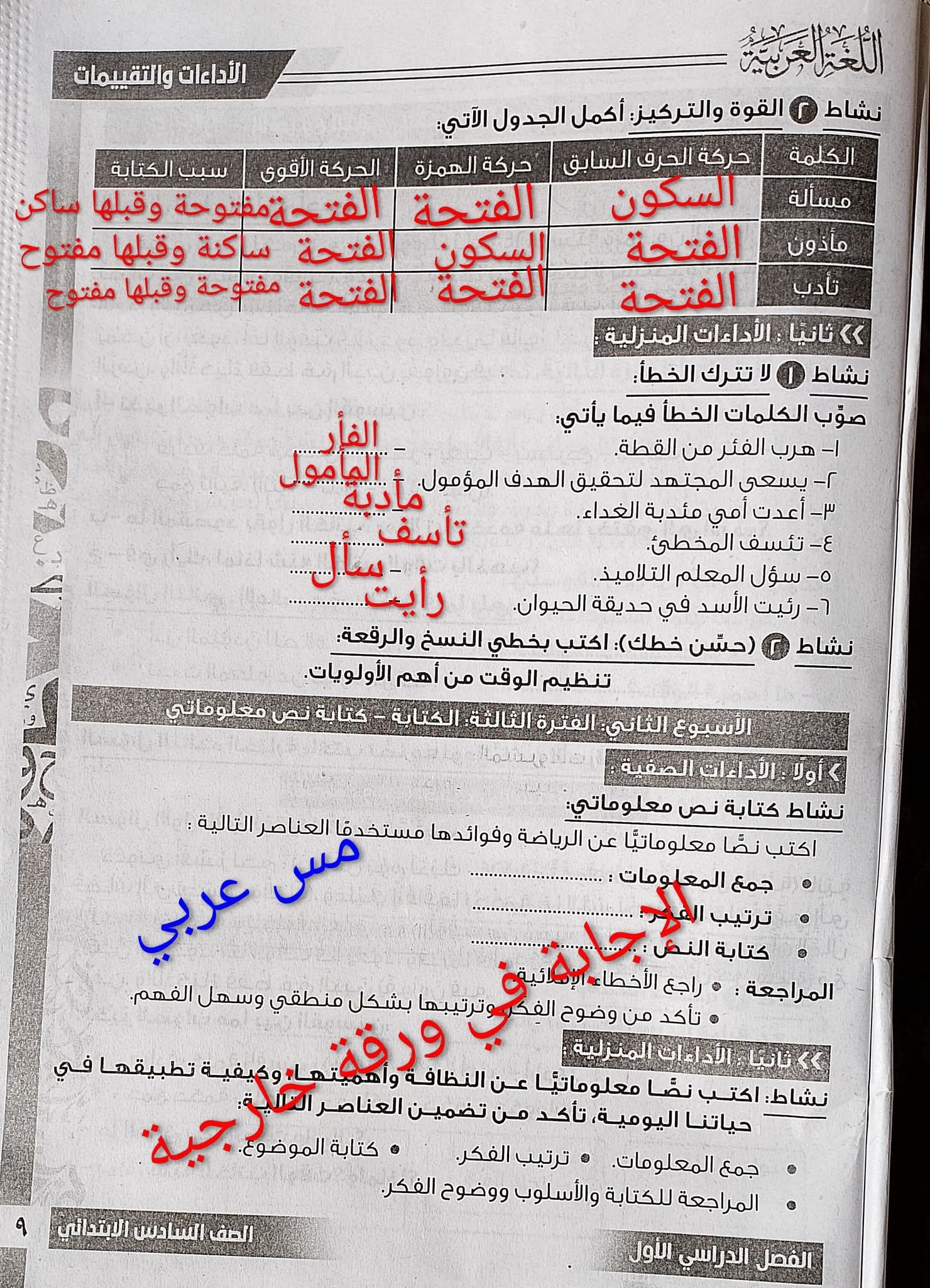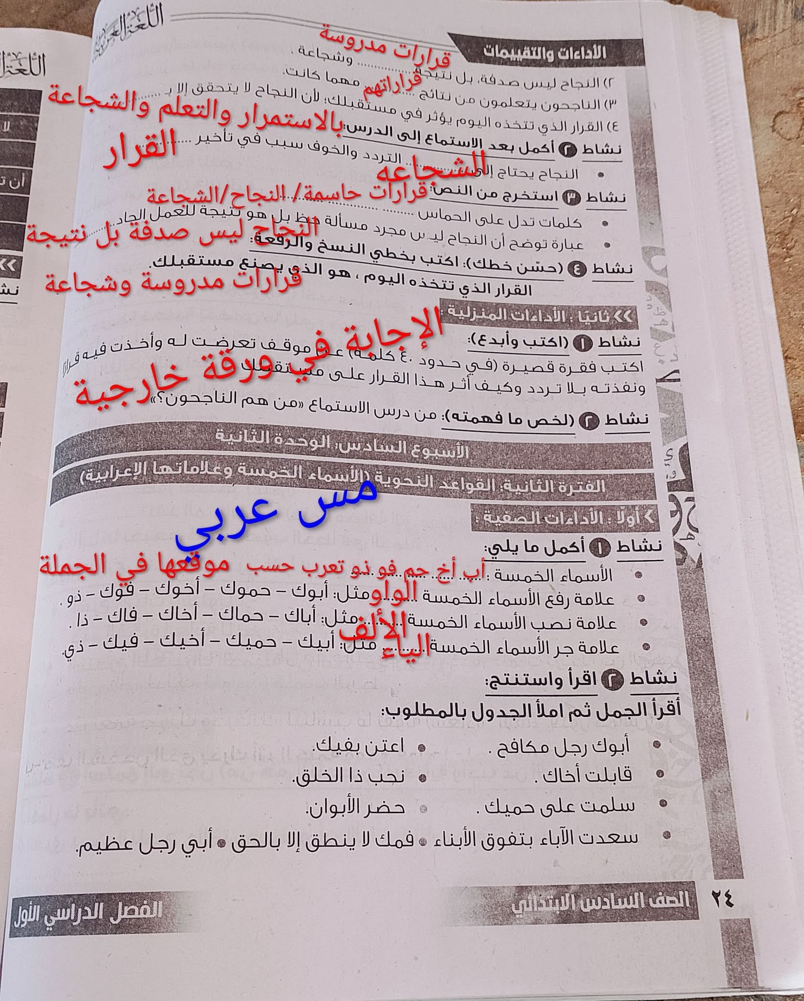 أعلنت وزارة التربية والتعليم والتعليم الفني، حل كتاب التقييمات للصف السادس الابتدائي عربي، الفصل الدراسي الأول للعام الدراسي 2025-2026.