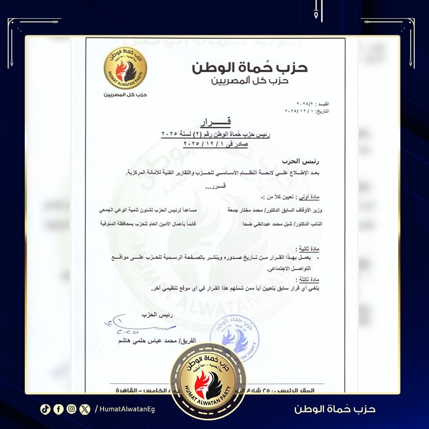 ولفت إلى أن حزب حماة الوطن، الذي يضم في تشكيلاته العديد من الضباط المتقاعدين، يسعى بشكل ملحوظ خلال هذه المرحلة إلى ضم شخصيات عامة ذات وزن اجتماعي وديني، معتبرًا أن وجود مختار جمعة داخل هيكل الحزب يمكن أن يمنحه قدرة أكبر على الوصول لجمهور أوسع، بما يتناسب مع طبيعة المرحلة وتحدياتها الانتخابية.