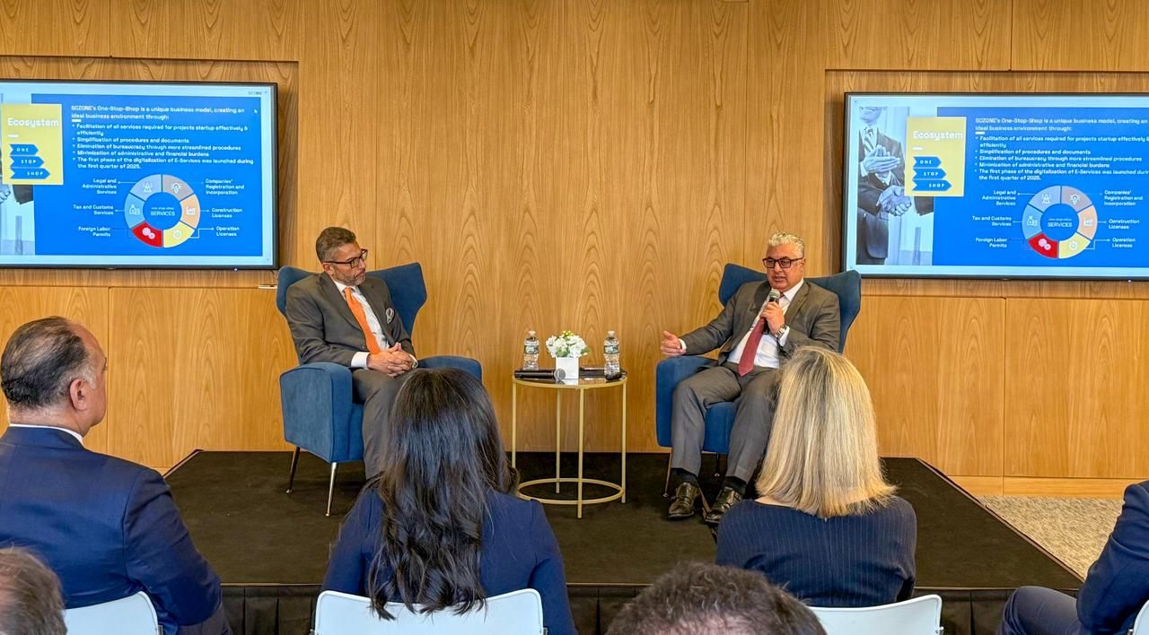 كما التقى رئيس الهيئة، رئيس شركة Boraie Development، الرائدة في تطوير المجتمعات العمرانية في الولايات المتحدة، لبحث فرص التعاون في المنشآت الخدمية واللوجستية داخل المنطقة الاقتصادية، ضمن استراتيجية الهيئة لإنشاء مجتمعات متكاملة تشمل منشآت صناعية وسكنية ومراكز تدريب للعمالة.