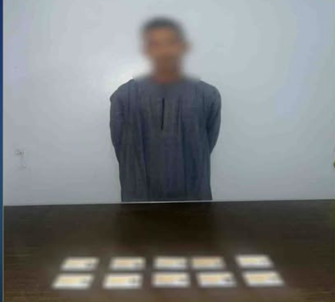 كما تم ضبط "عاطل"، مقيم بدائرة المركز، وبحوزته عدد من البطاقات الشخصية الخاصة ببعض المواطنين لدفعهم للتصويت لصالح أحد المرشحين أيضًا.