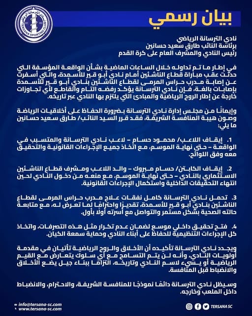 بيان نادي الترسانة الرسمي