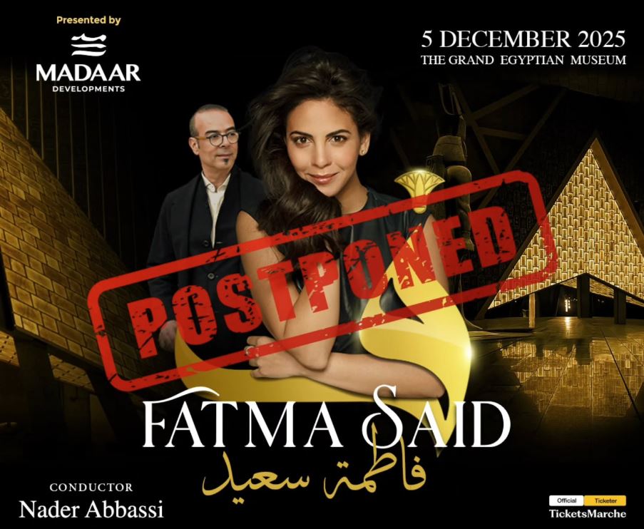 أعلنت السوبرانو فاطمة سعيد اعتذارها عن عدم إحياء الحفل المقرر إقامته غدًا في المتحف المصري الكبير، بسبب تعرضها لالتهاب في الحلق أثر في قدرتها على الغناء.
