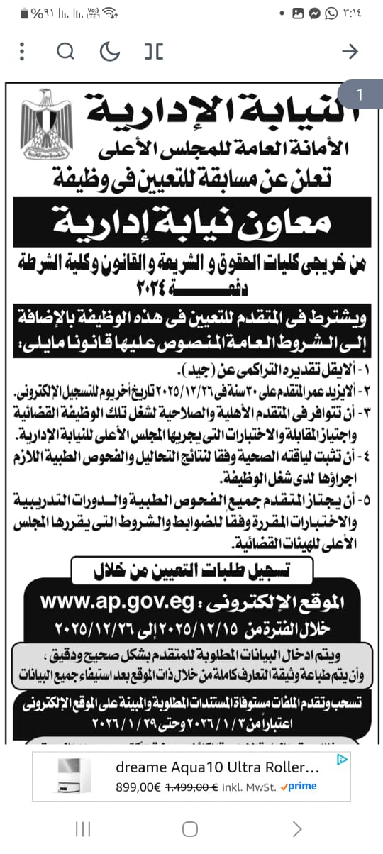 وحددت النيابة الإدارية الشروط الواجب توافرها في المتقدمين للوظيفة كالتالي: