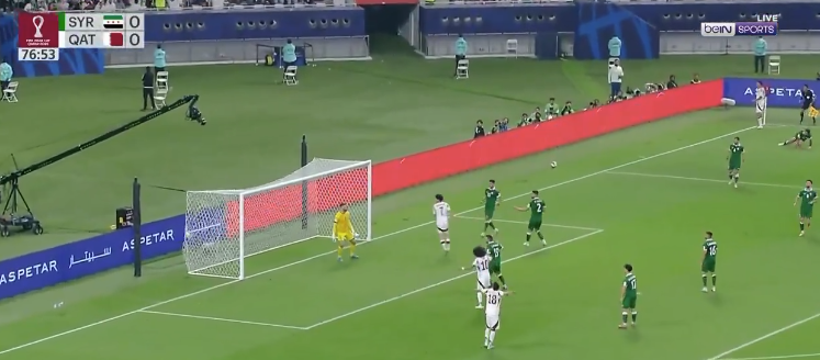 وفي الدقيقة 90: تعادل المنتخب السوري، عن طريق عمر خربين، من خلال تسديدة قوية من خارج منطقة الجزاء سكنت الزاوية اليسرى لحارس مرمى قطر.