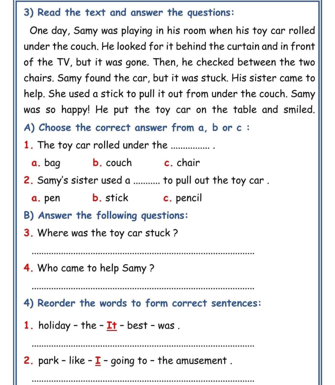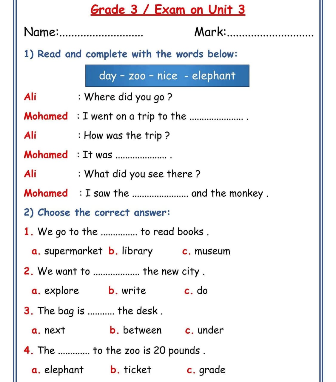 نماذج امتحانات إنجليزي للصف الثالث الابتدائي 2025-2026