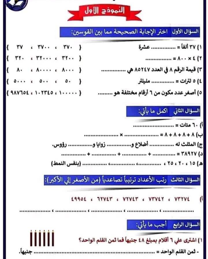 ونستعرض نماذج امتحانات الصف الثالث الابتدائي في جميع المواد الدراسية على النحو التالي: