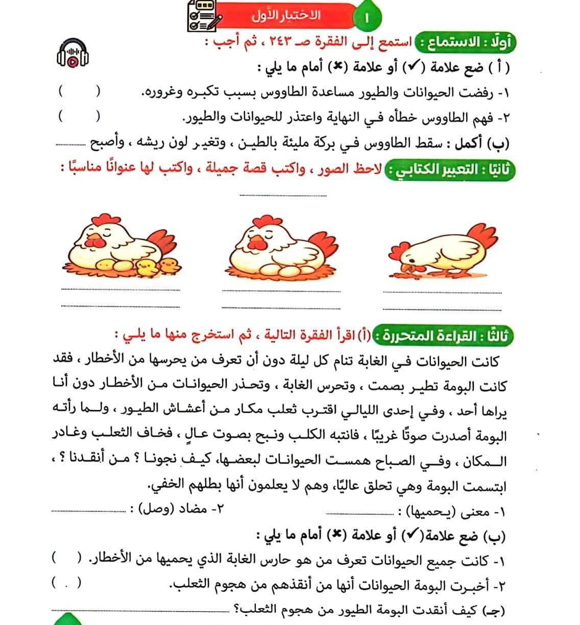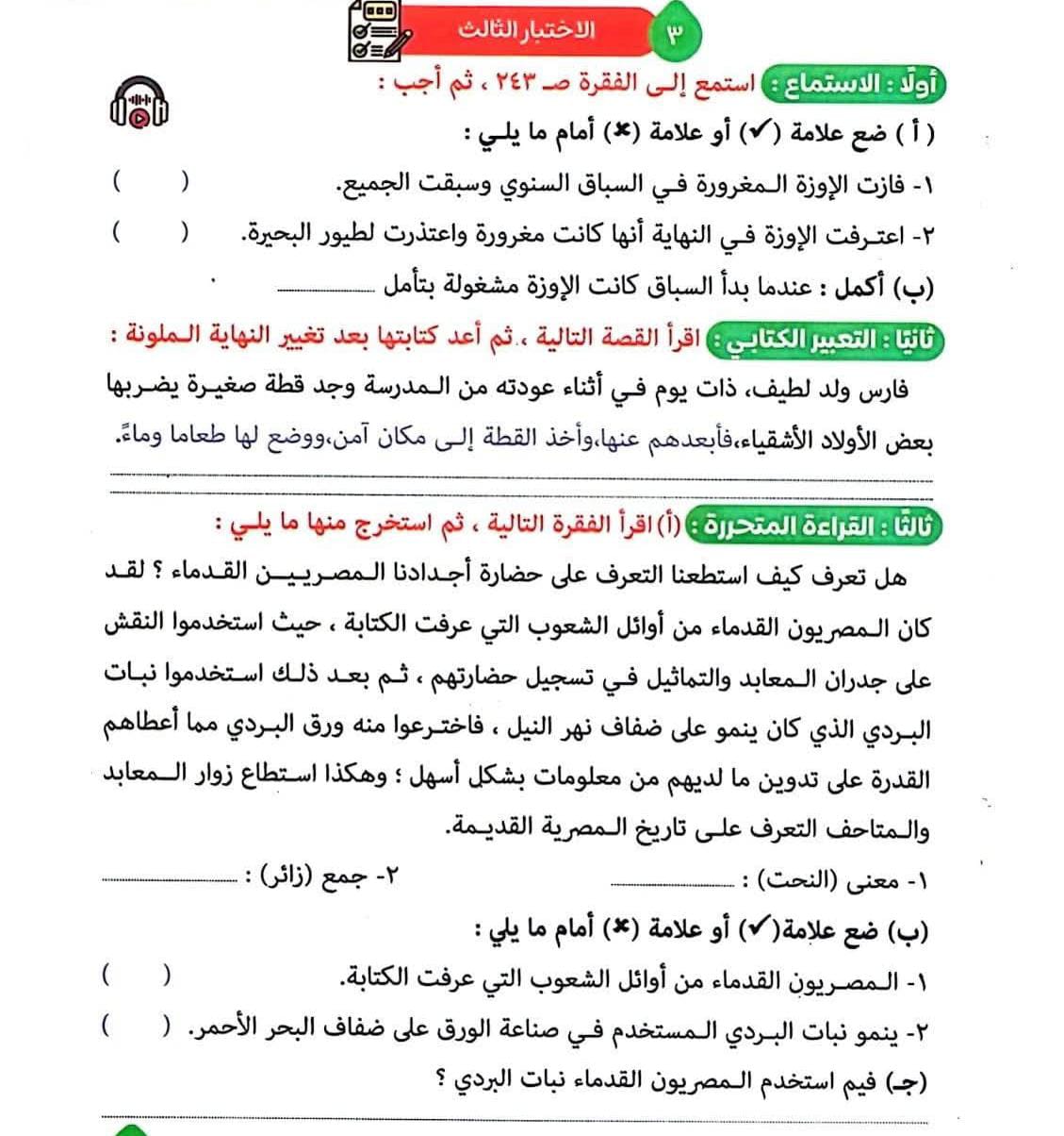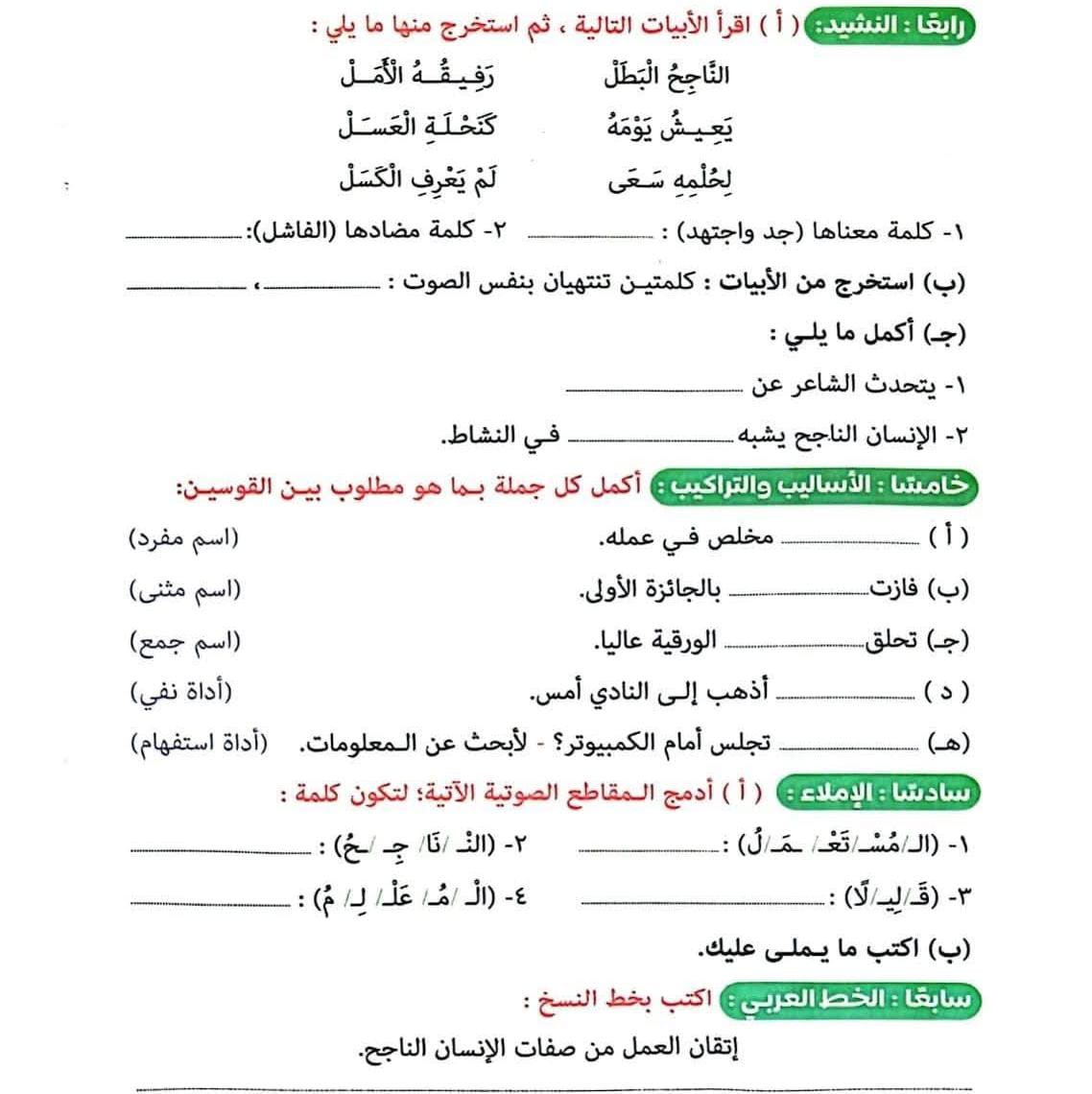 مراجعة لغة عربية للصف الثالث الابتدائي الترم الأول 2025-2026