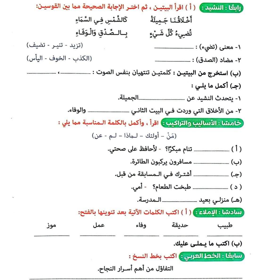 منهج اللغة العربية للصف الثالث الابتدائي 2025-2026
