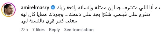 وجّه أمير المصري رسالة شكر للفنانة إلهام شاهين، معبّرًا عن سعادته بتعليقها ودعمها، وكتب: “دا أنا اللي متشرف إن ممثلة وإنسانة رائعة زيك تتفرج على فيلمي. شكرًا بجد على دعمك، وجودك معايا كان ليه معنى كبير جدًا بالنسبة لي”