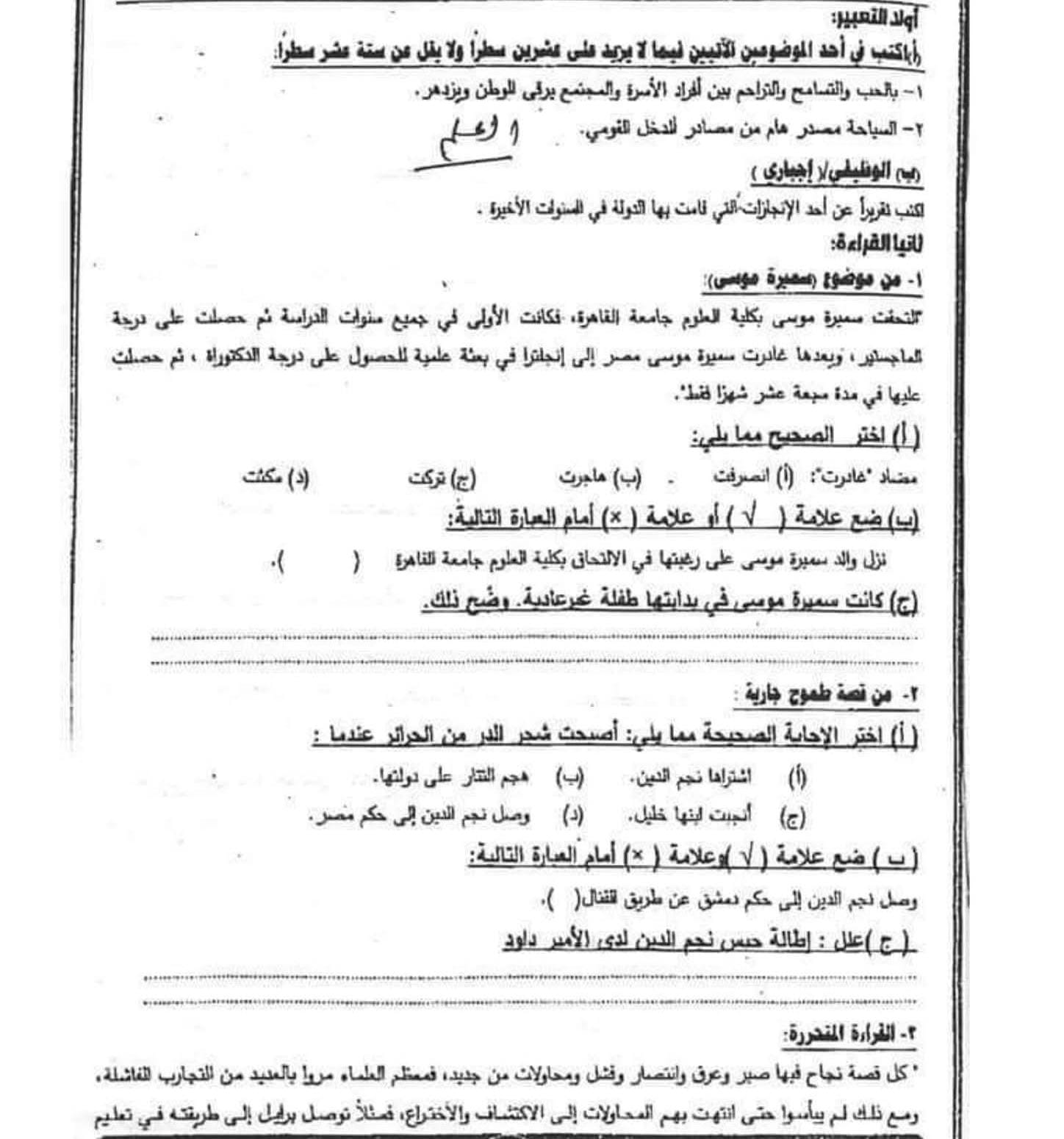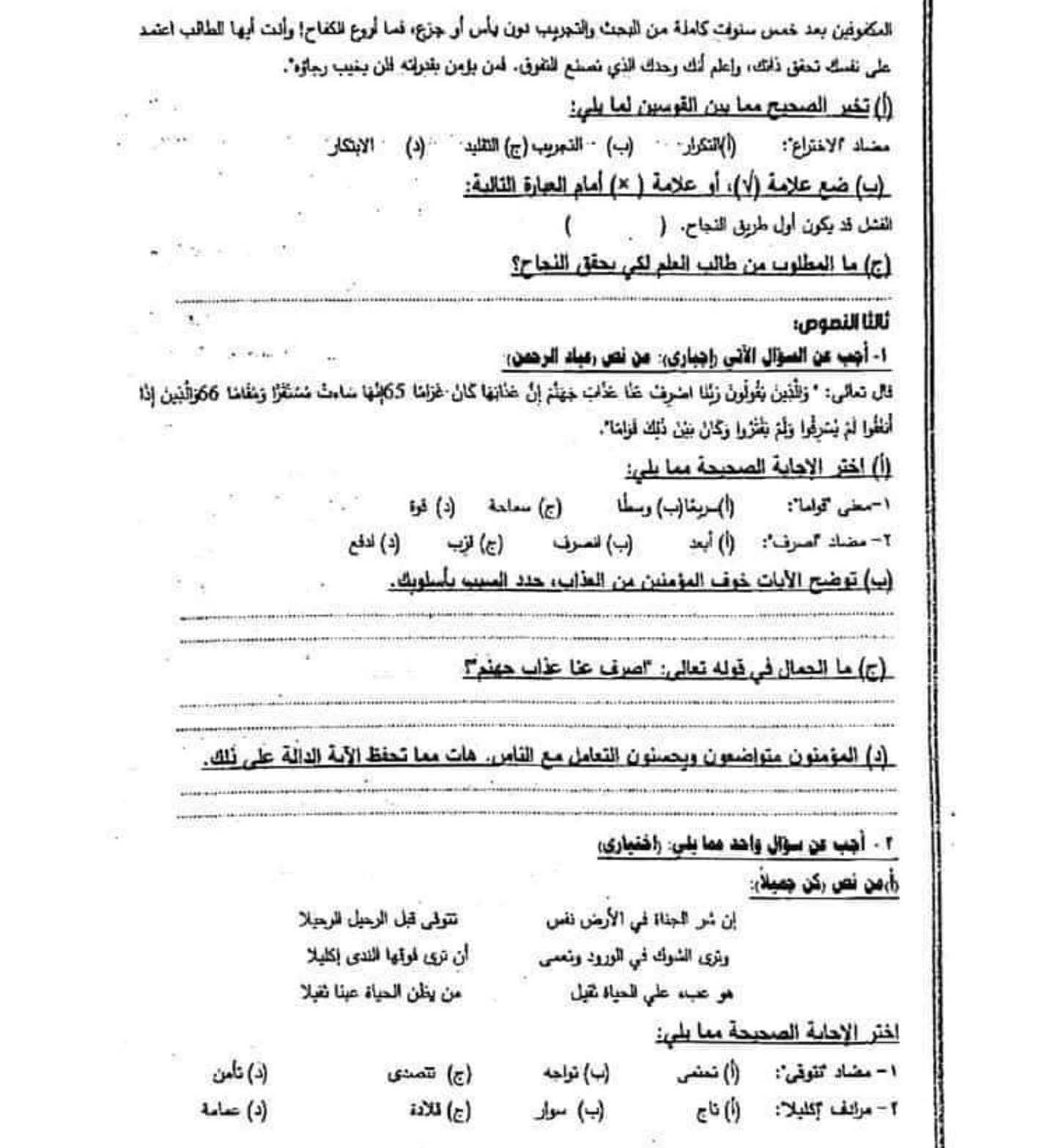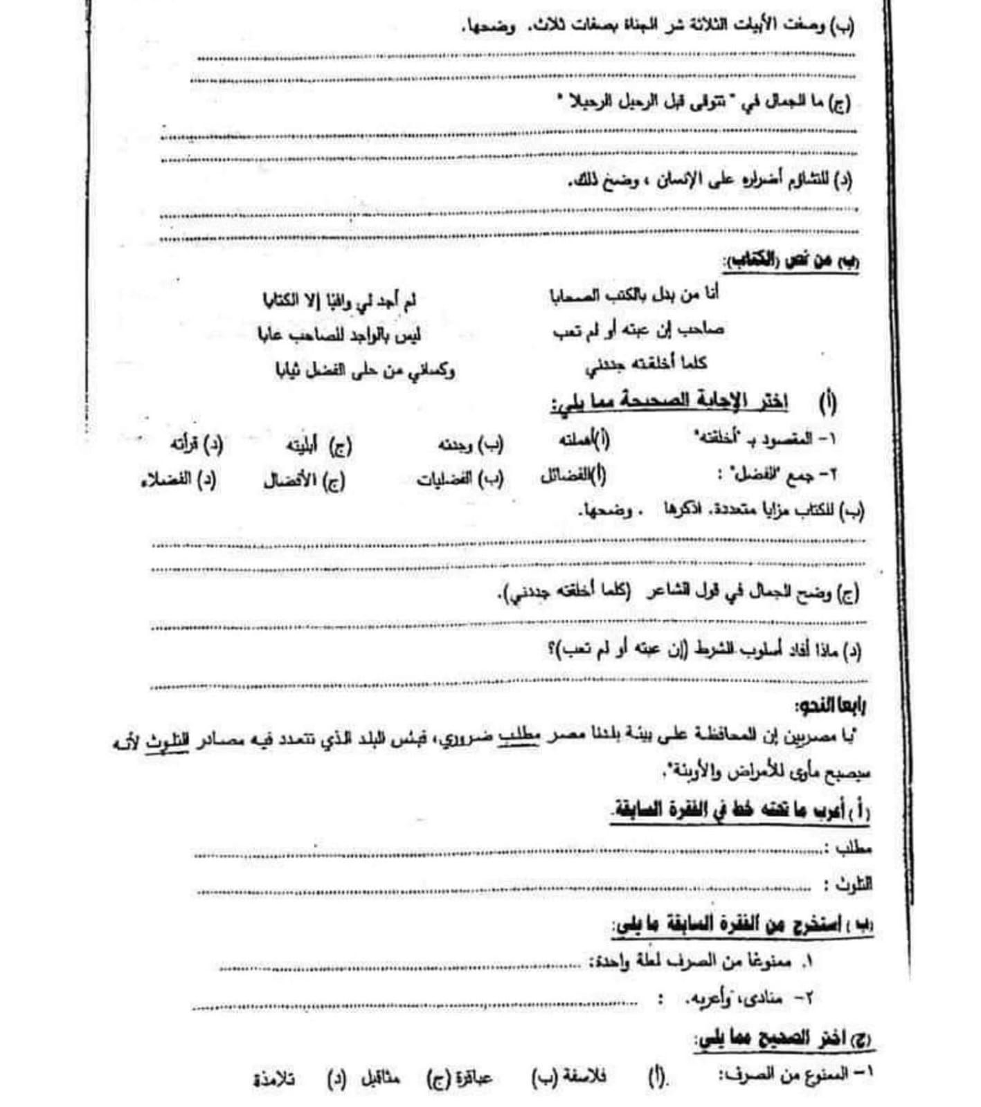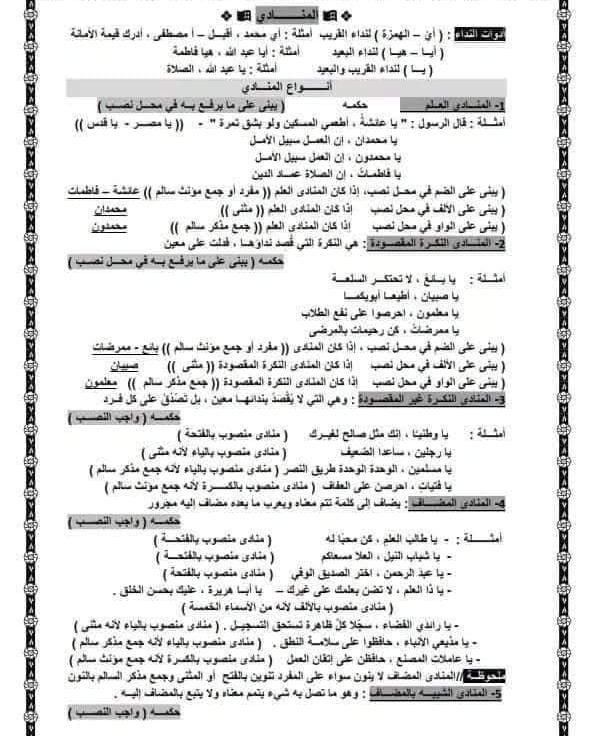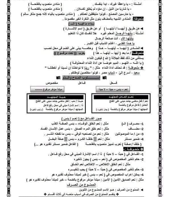 مراجعة لغة عربية للصف الثالث الإعدادي الترم الأول 2025-2026