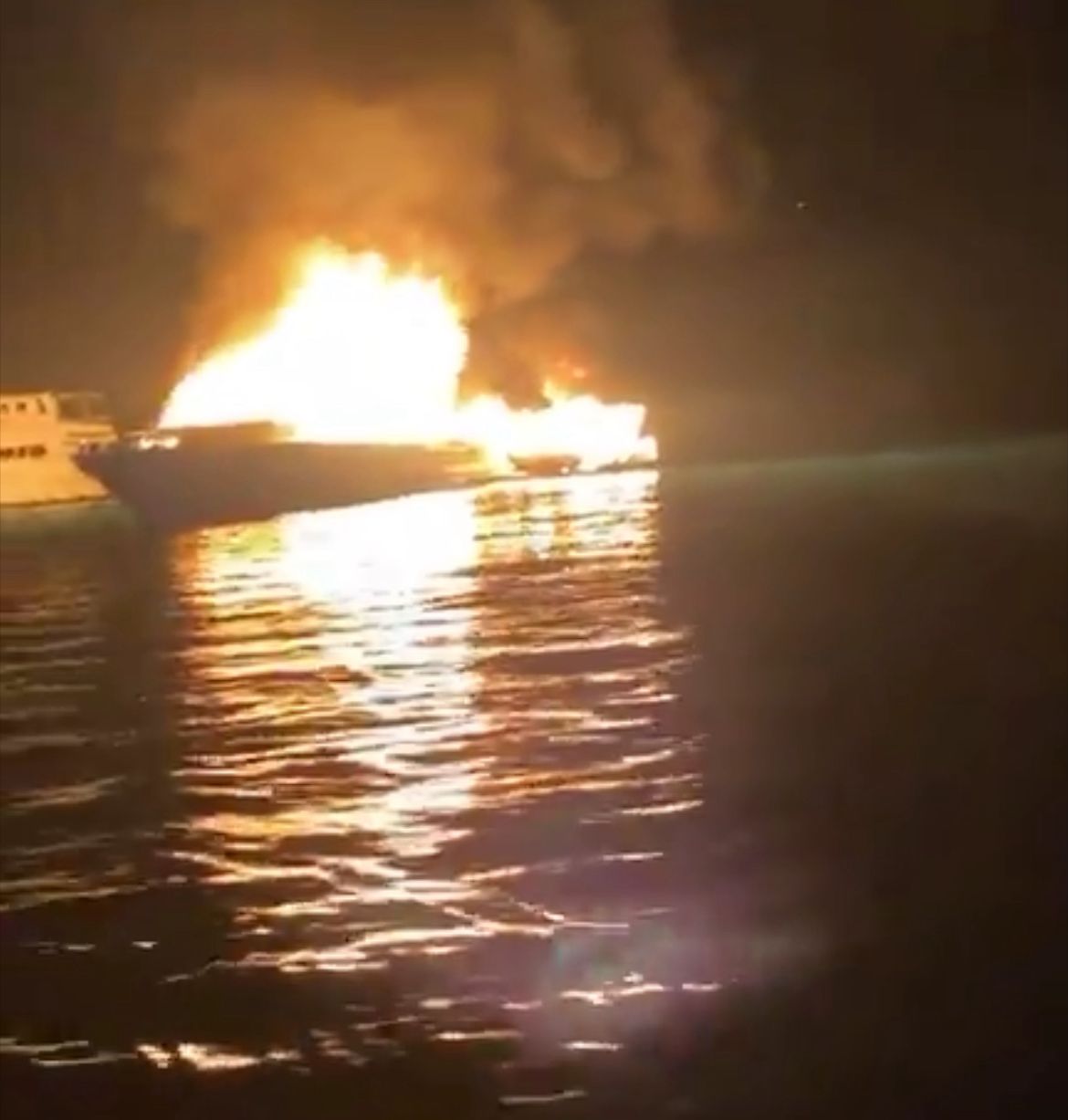 جرانة وسلمى، تفحم لنش سياحي وفلوكة بالغردقة (صور)