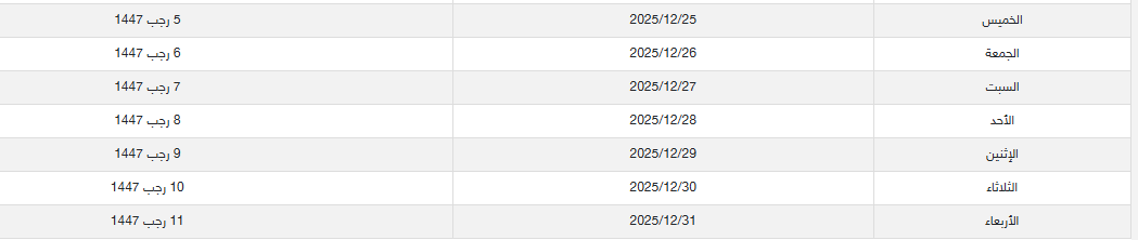 إجازات شهر ديسمبر 2025 الرسمية