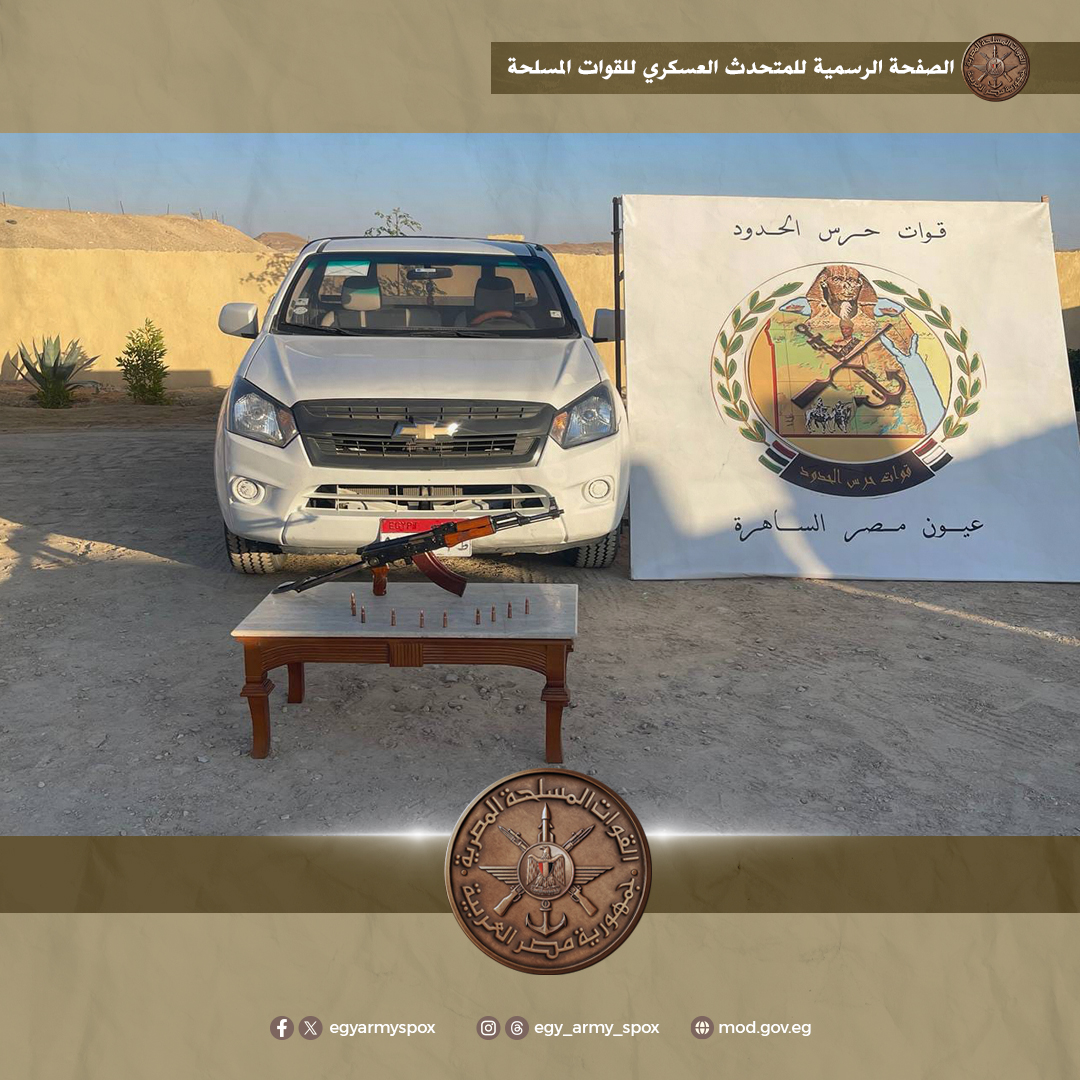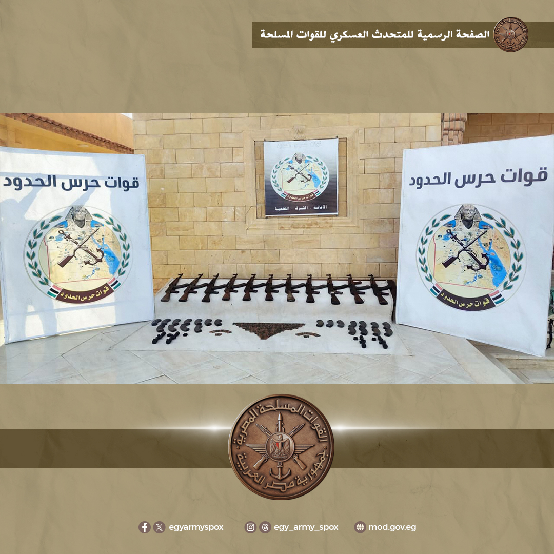 ونجحت قوات حرس الحدود، على الاتجاه الاستراتيجى الغربى في إحباط محاولات لتهريب كميات من الأسلحة والذخائر، حيث تم ضبط عدد 11 بندقية آلية، و30 بندقية خرطوش، و1 مسدس و33 خزنة، و4 تلسكوب وعدد 443 طلقة، و12800 قرص مخدر.