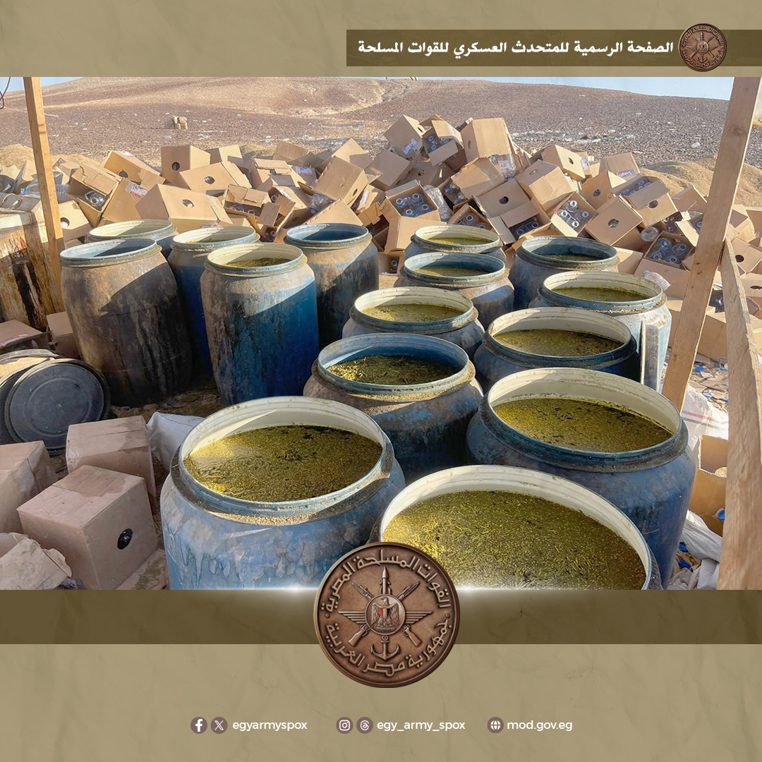 وتمكنت قوات حرس الحدود، من ضبط مصنع وعدد من المخازن لتصنيع المواد المخدرة، بعد ورود معلومات تفيد بقيام عدد من المهربين باستغلال إحدى المناطق الجبلية بشبه جزيرة سيناء لتصنيع وتخزين المواد المخدرة.